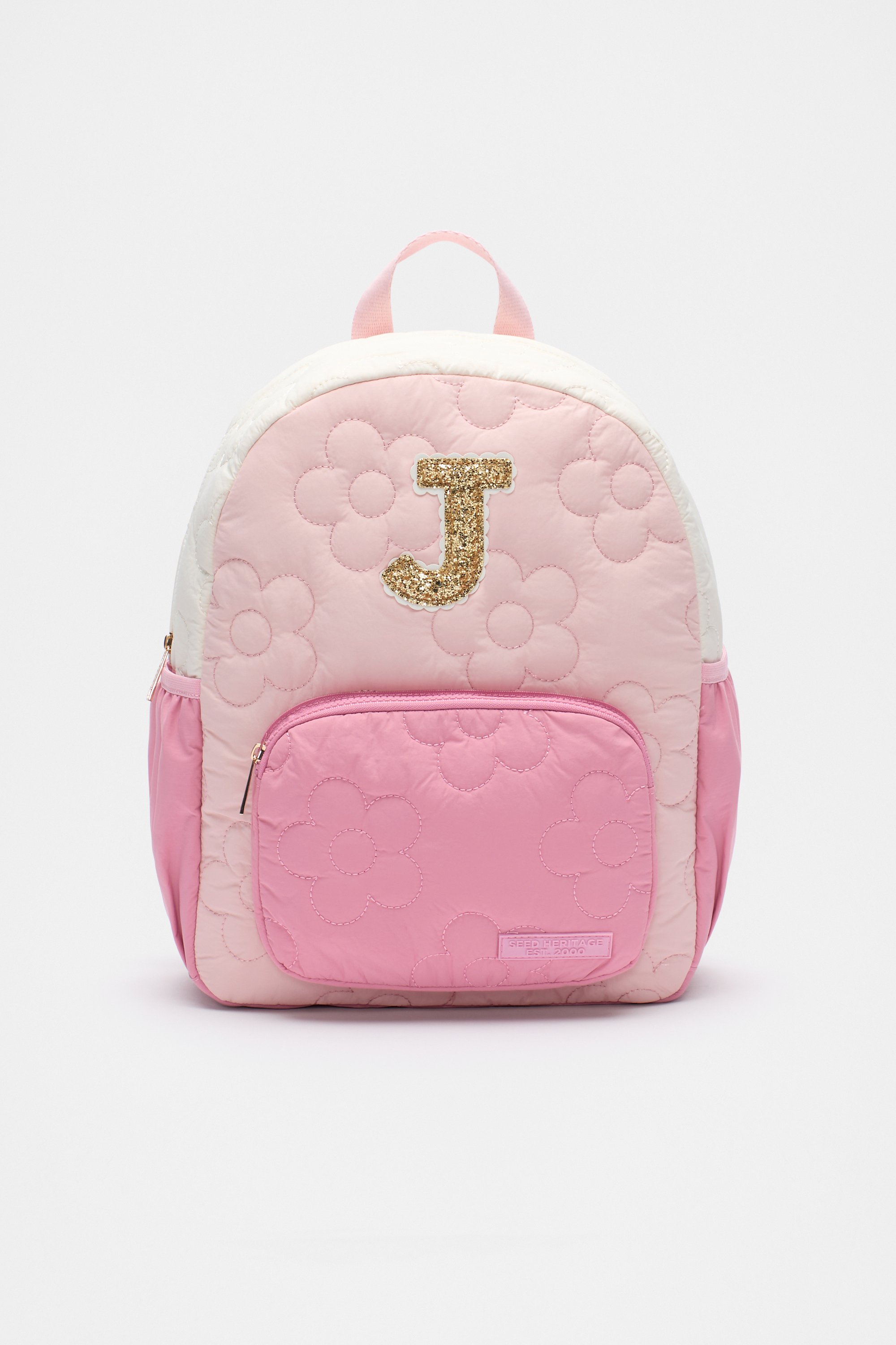Convenient, cool and personalised just for her, this backpack is set to be a new everyday favourite. Generously sized, it features a front zip pocket, two elasticated side pockets, a top handle and adjustable shoulder straps. For that little something extra, it also features a sparkly sequin initial patch, gold tone hardware and sweetly embroidered details.