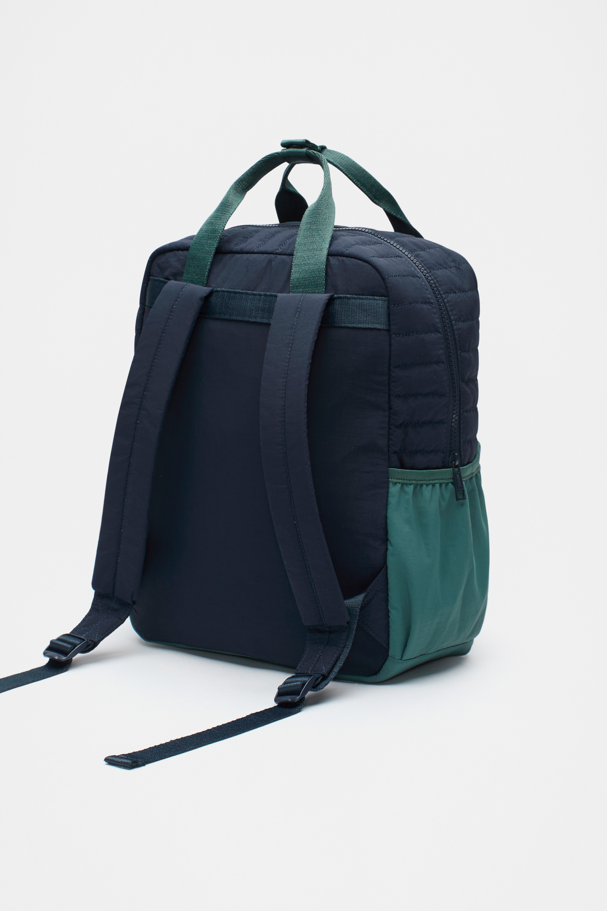 Convenient, cool and personalised just for him, this backpack is set to be his new favourite. Generously sized, it features a top handle, a front zip pocket, elasticated side pockets and adjustable shoulder straps. With a colour block design, it has a quilted finish for everyday wearability.