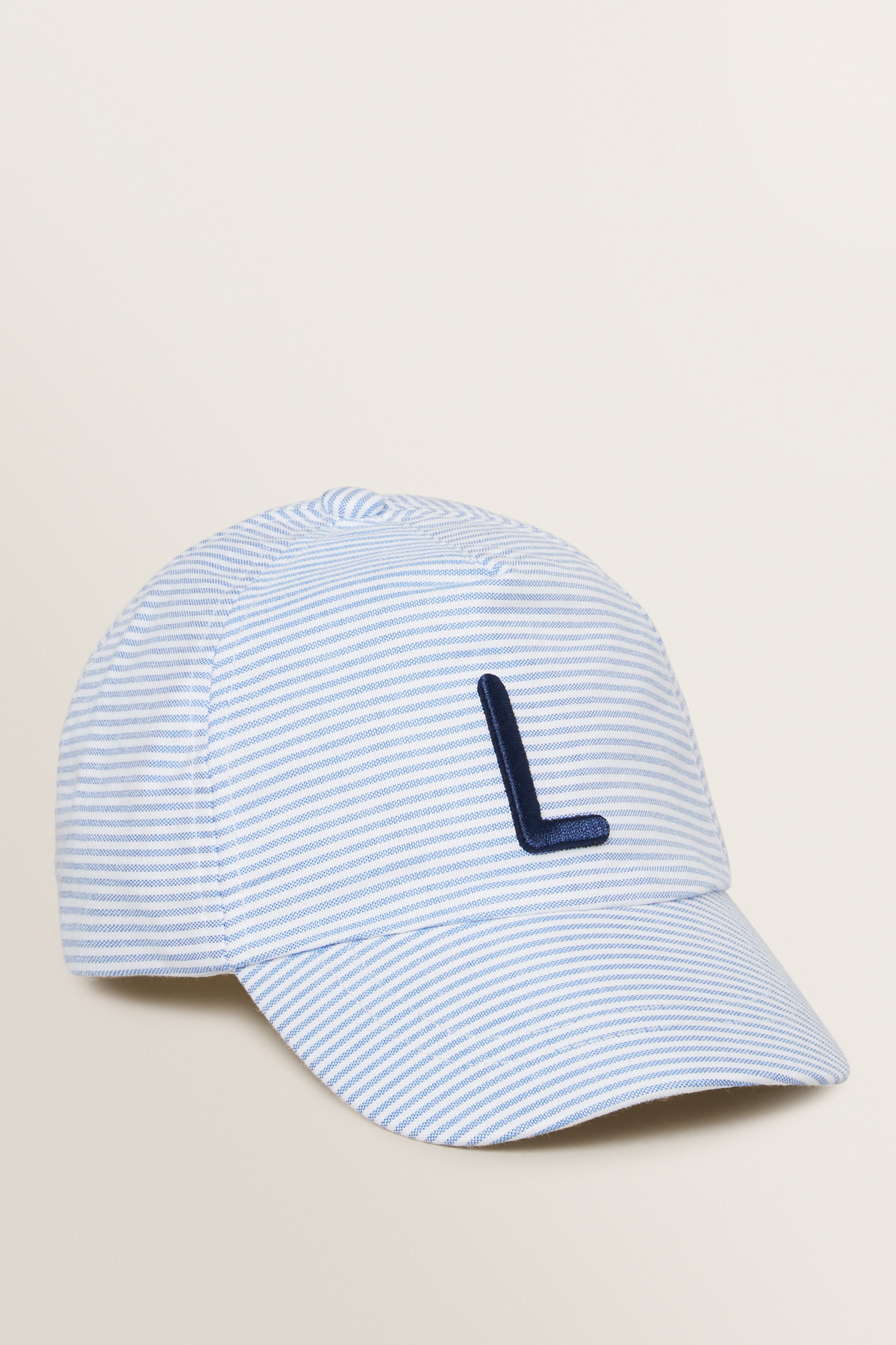 Incorporate stylish sun protection into your little one's wardrobe. Featuring a mini-stripe design, this Initial Cap features a bold letter motif on the front panel. For care instructions, check the label inside of the garment.