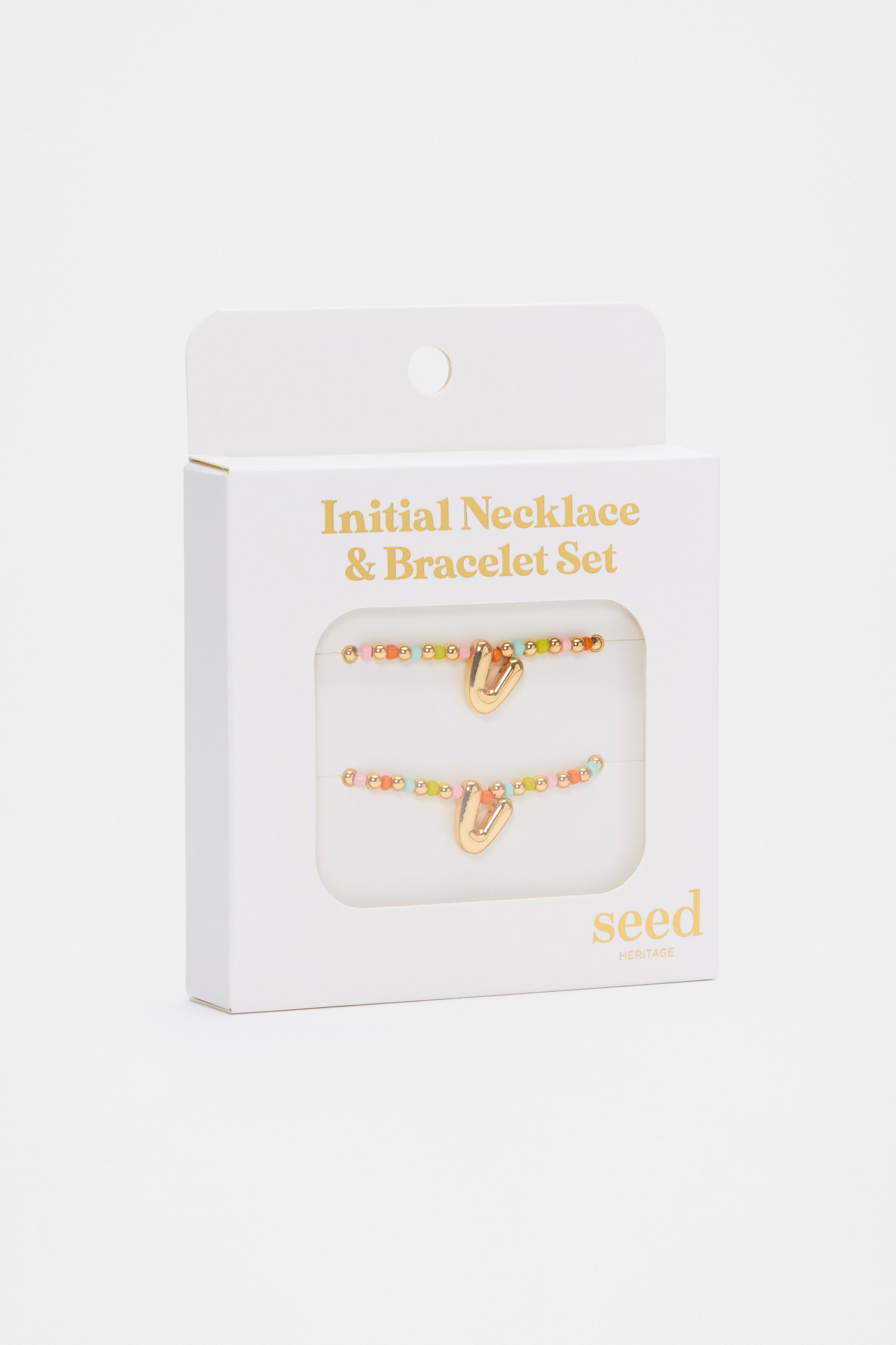 Initial Necklace And Bracelet Set  V  hi-res Initial Necklace And Bracelet Set  V  hi-res