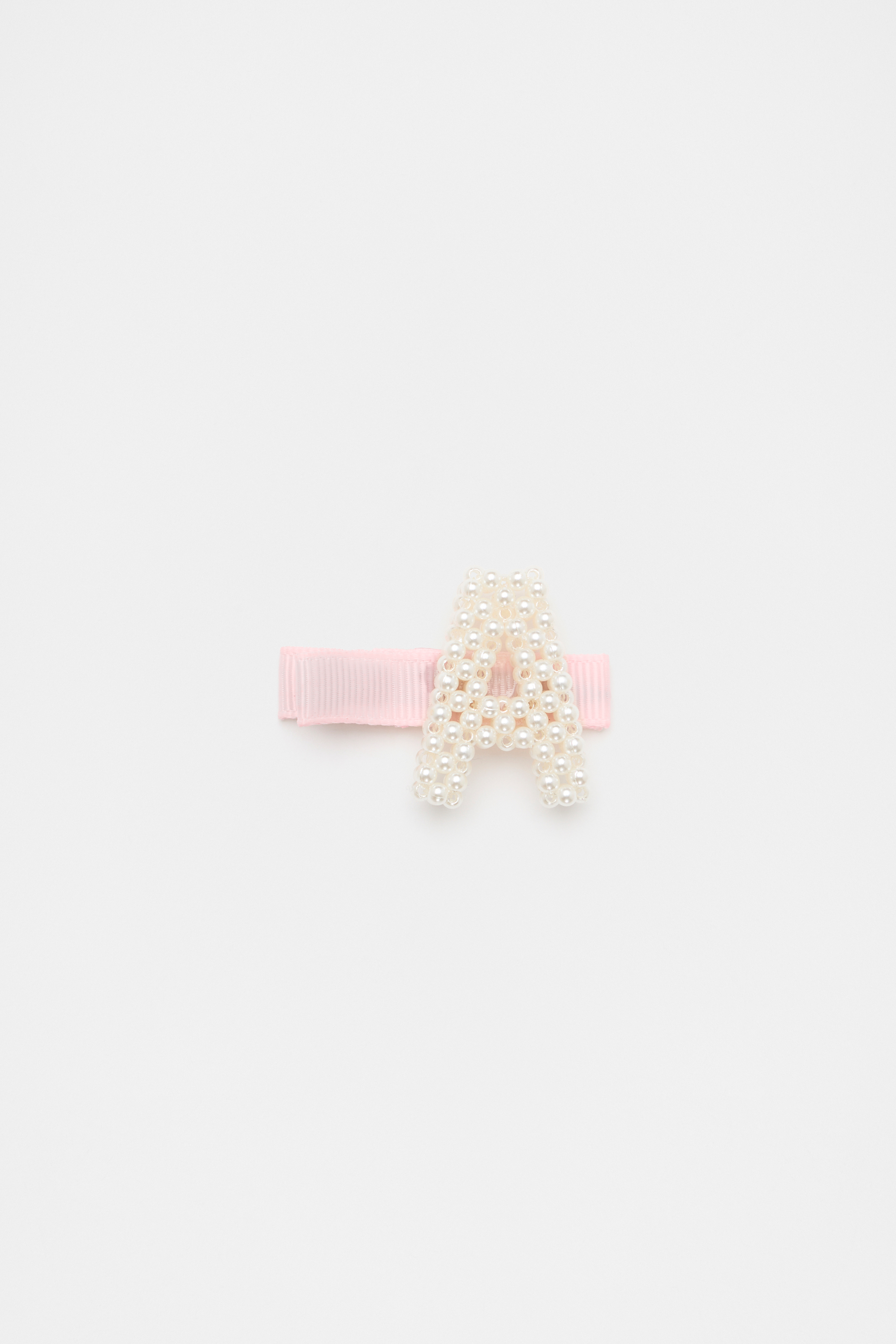 This hair snap is the ideal style to add a personal touch. It features an initial design of pearls on a grosgrain ribbon duck clip. This product is not a toy and is not suitable for children three years and under.
