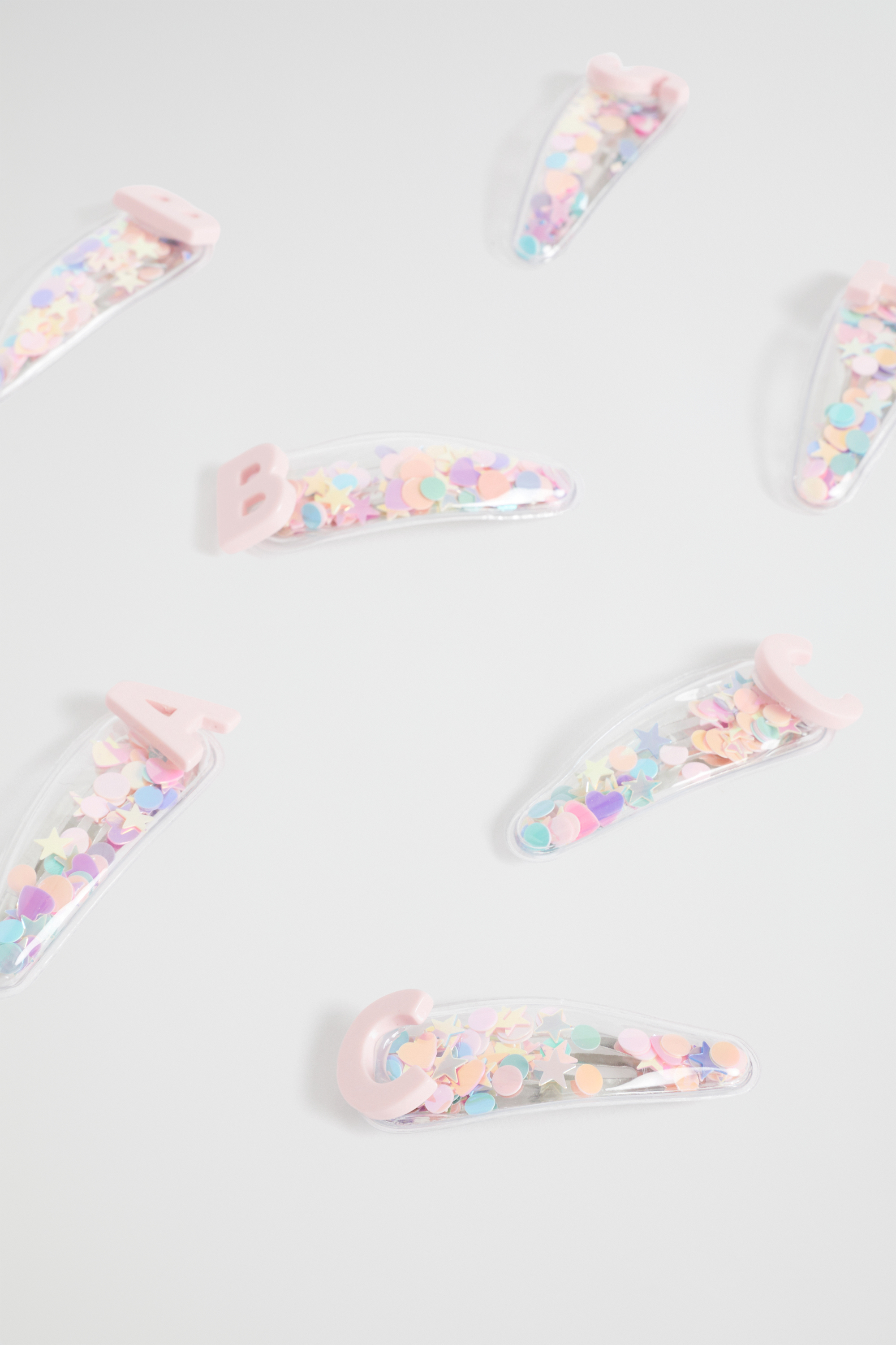 For a cute, personalised touch to your next party, add these fun clips. Set on classic snap clips, the shaker design is filled with multi-coloured dot and star shaped confetti and features a bright inital detail at the top of each clip. This product is not a toy and is not suitable for children 3 years and under.