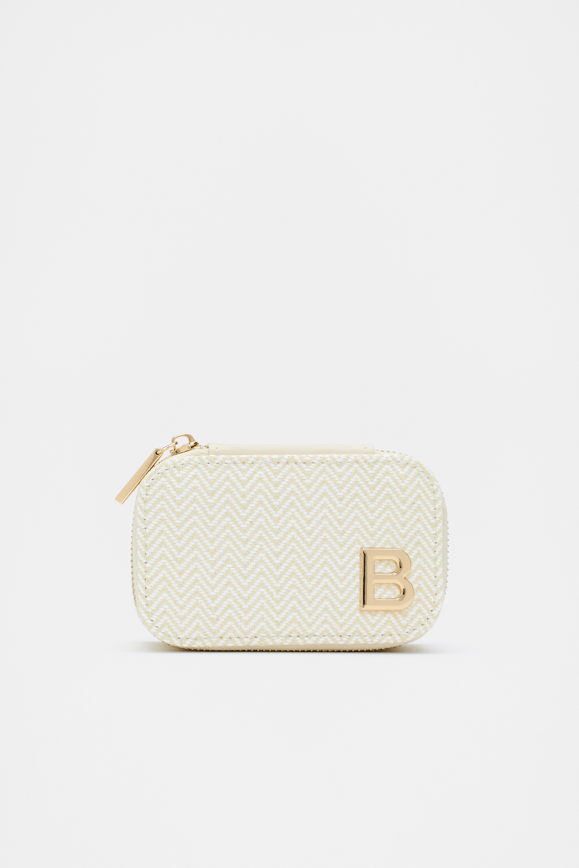 Perfect for travelling or keeping your smallest pieces safe, this miniature jewellery case features an initial design for a personalised touch. It also has ring beds and secures with a top zip closure.