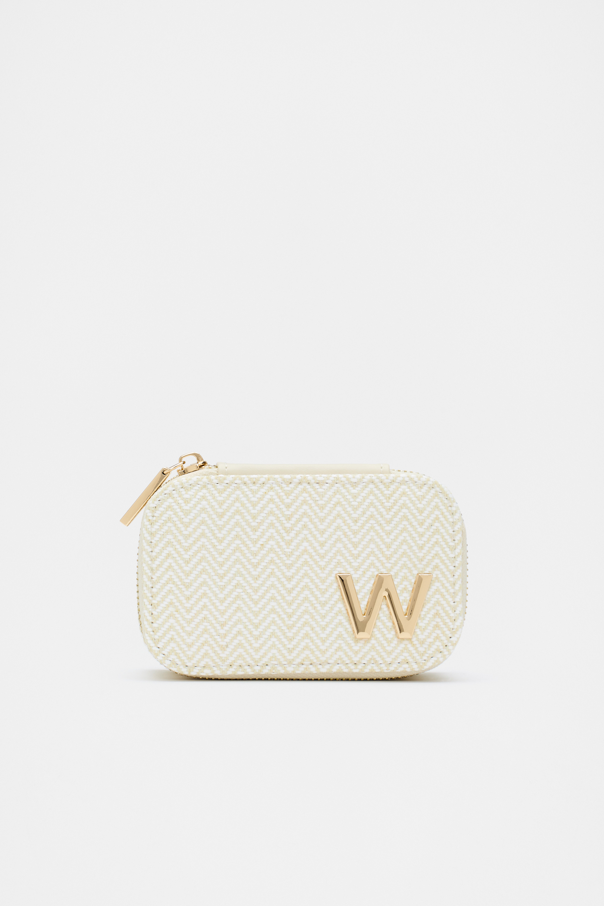 Perfect for travelling or keeping your smallest pieces safe, this miniature jewellery case features an initial design for a personalised touch. It also has ring beds and secures with a top zip closure.
