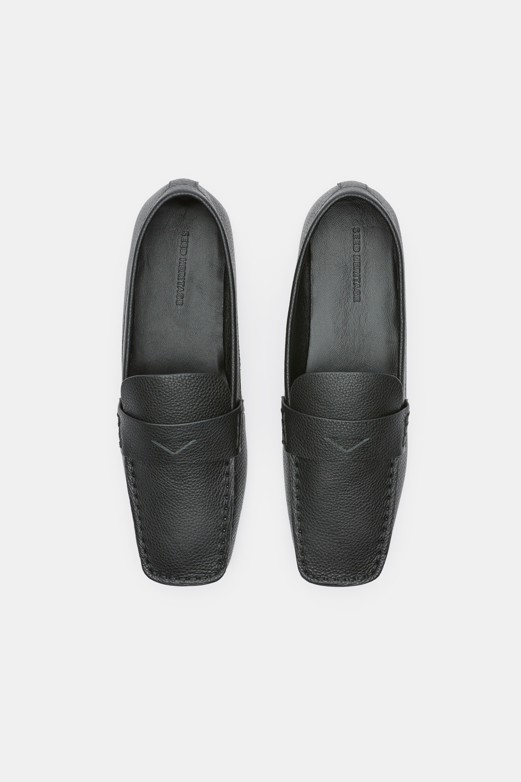 A workwear style with a relaxed feel, these loafers are an essential pair for your wardrobe refresh. Crafted in premium leather with a pebble grain, they feature a squared toe and have a flat profile, comfortable for all day wear.