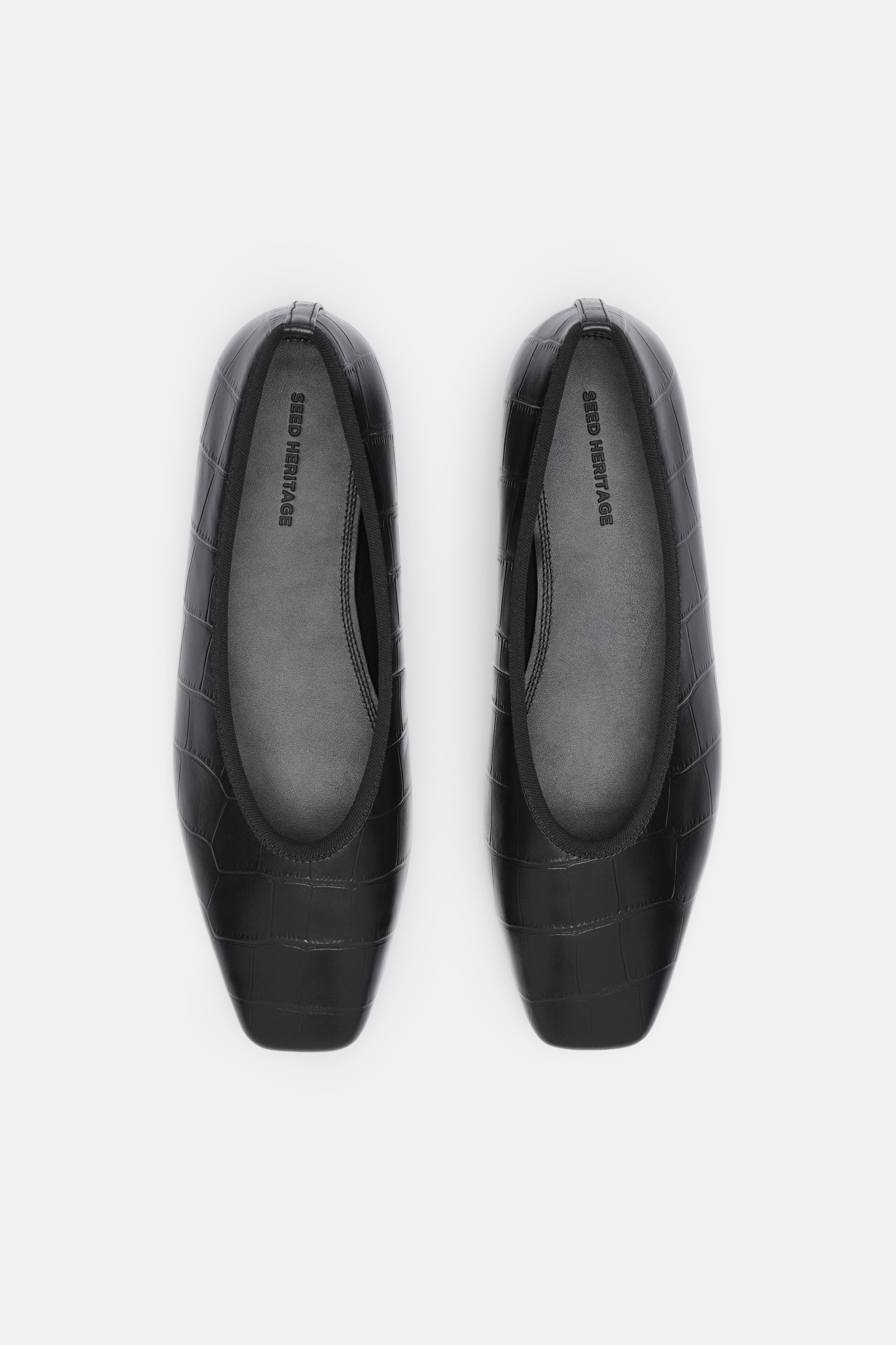Elevate your everyday style with this modern pair of ballet flats. Perfect for your workwear wardrobe, they feature a square toe design with a mock-croc debossed detail.