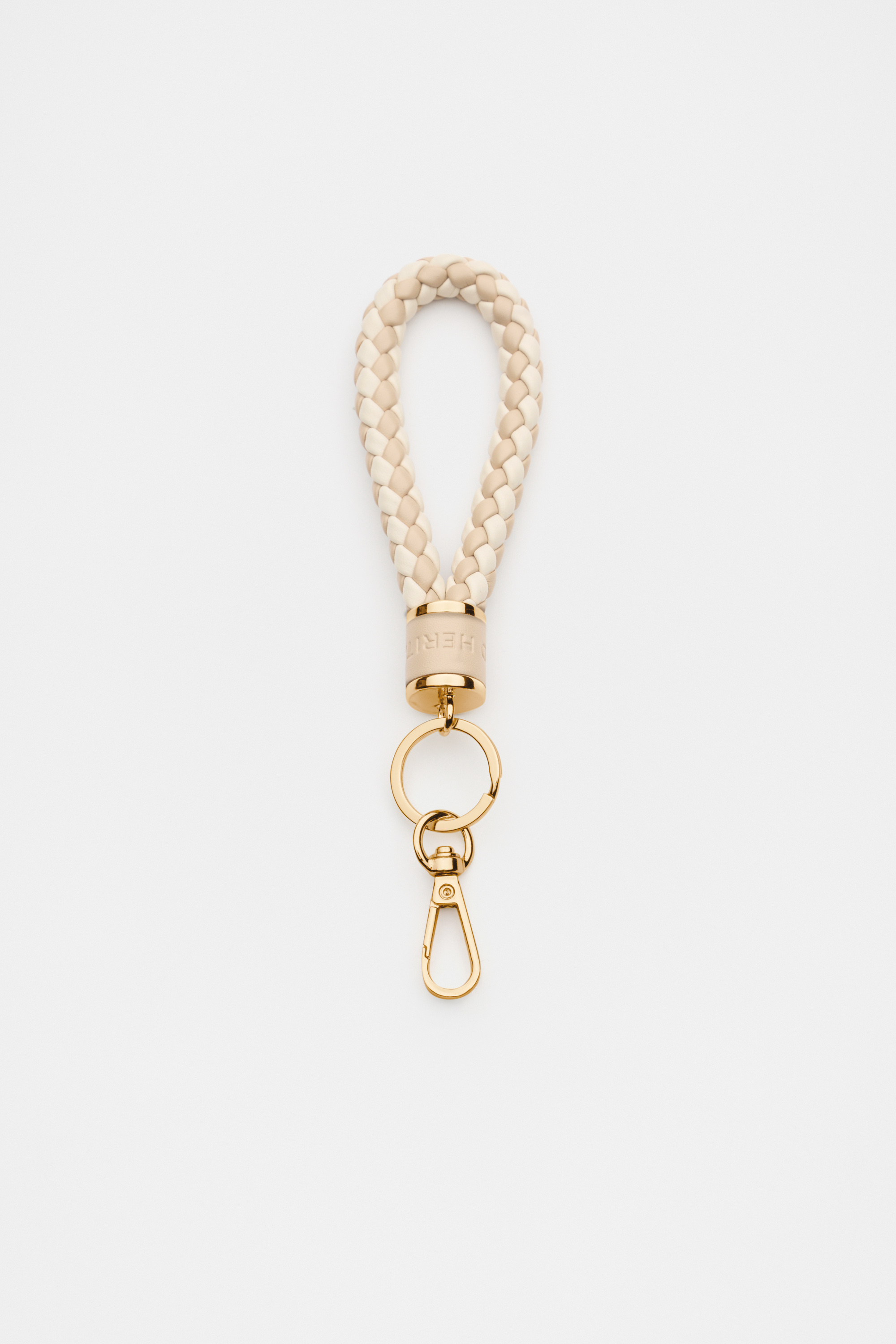 A handbag necessity, this keyring offers a stylish and practical solution. It features gold look hardware, Seed logo design and a braided strap.