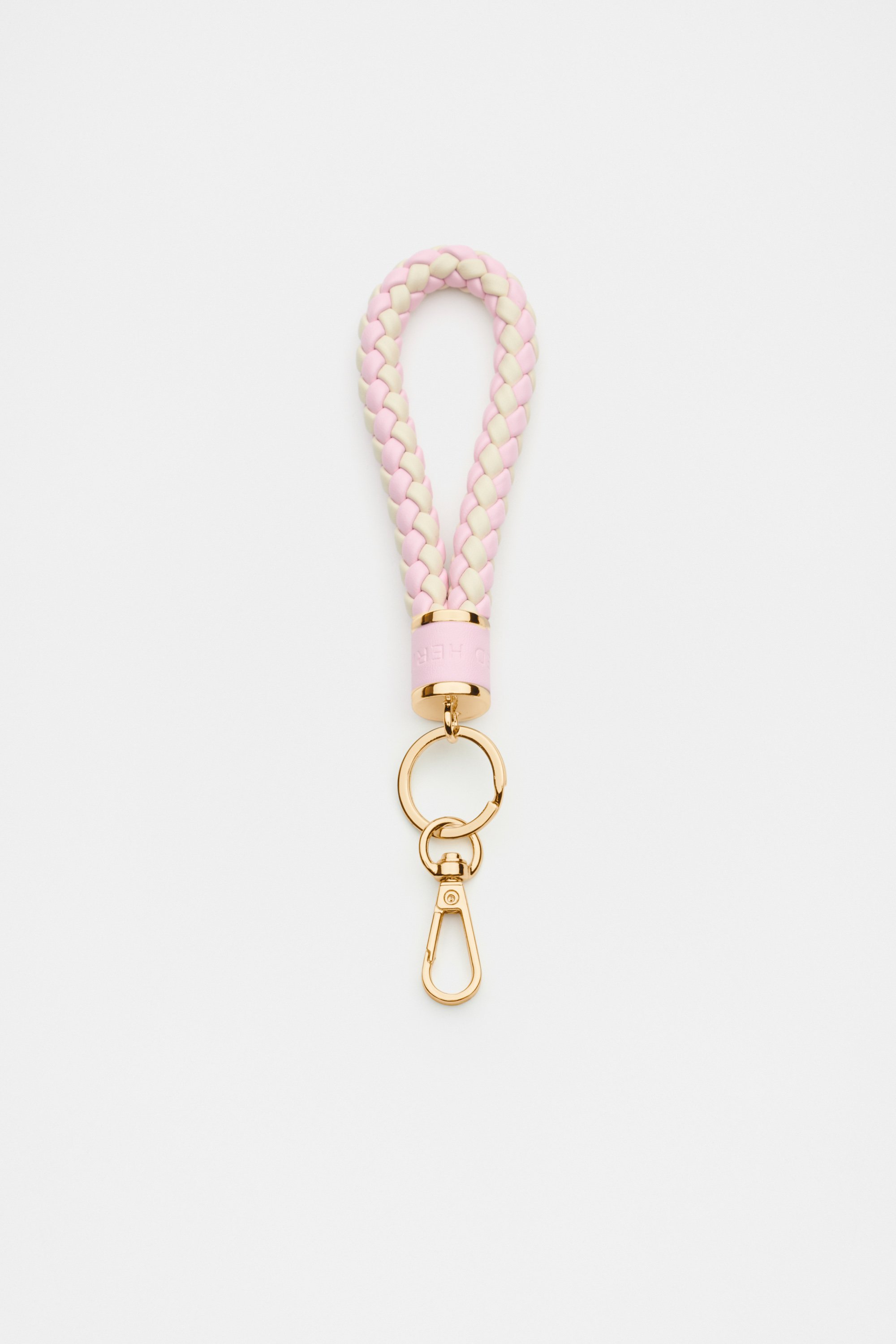 A handbag necessity, this keyring offers a stylish and practical solution. It features gold look hardware, Seed logo design and a braided strap.