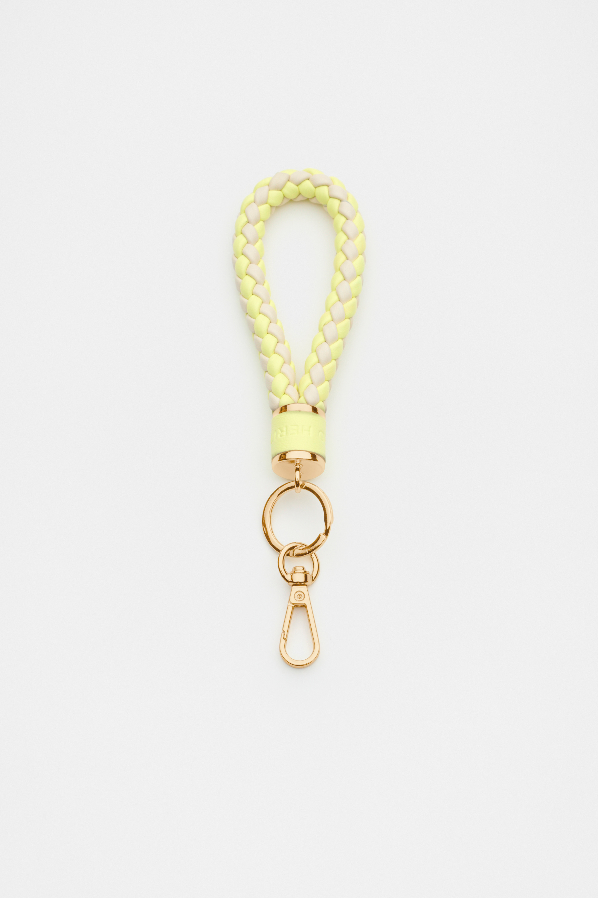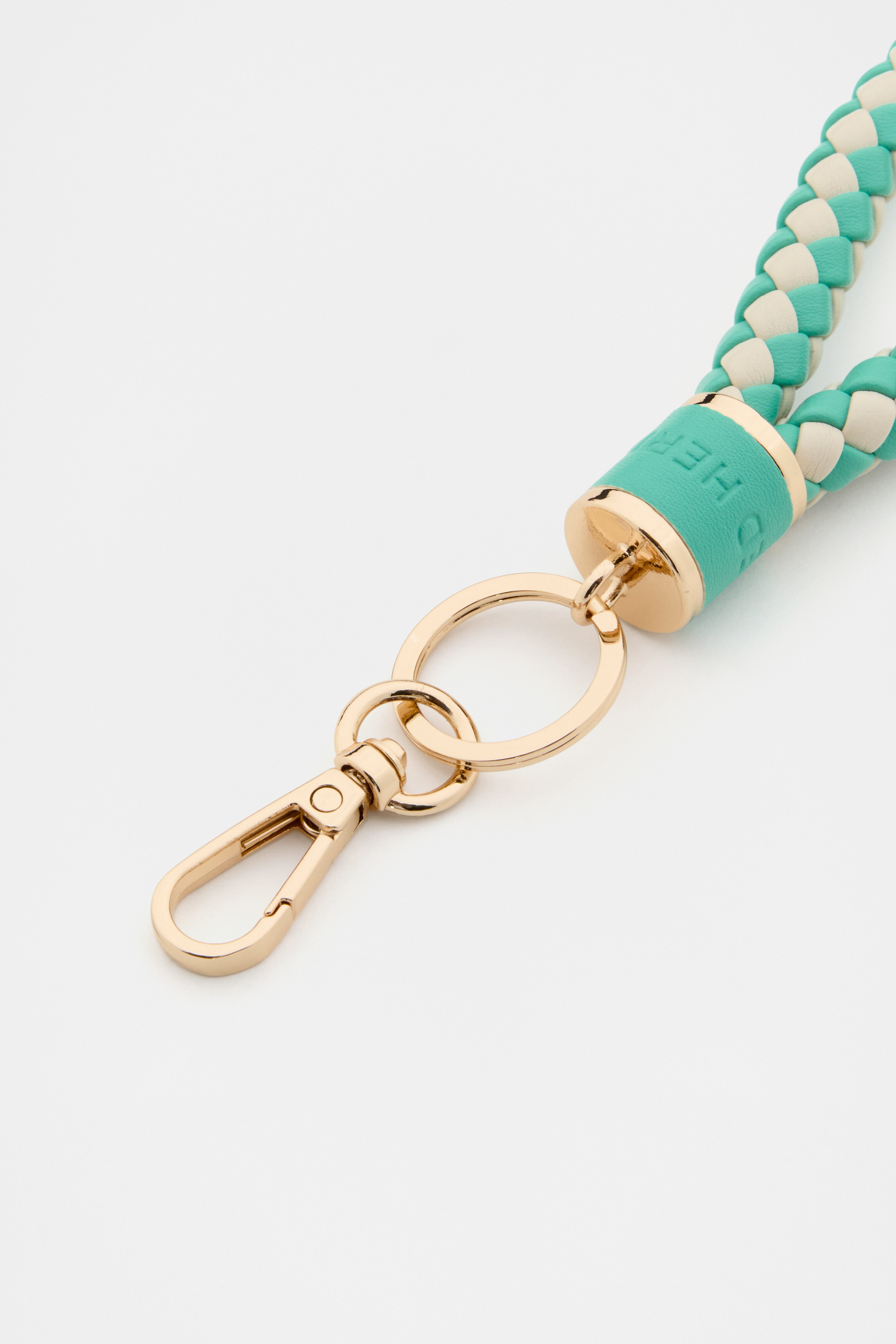 A handbag necessity, this keyring offers a stylish and practical solution. It features gold look hardware, Seed logo design and a braided strap.