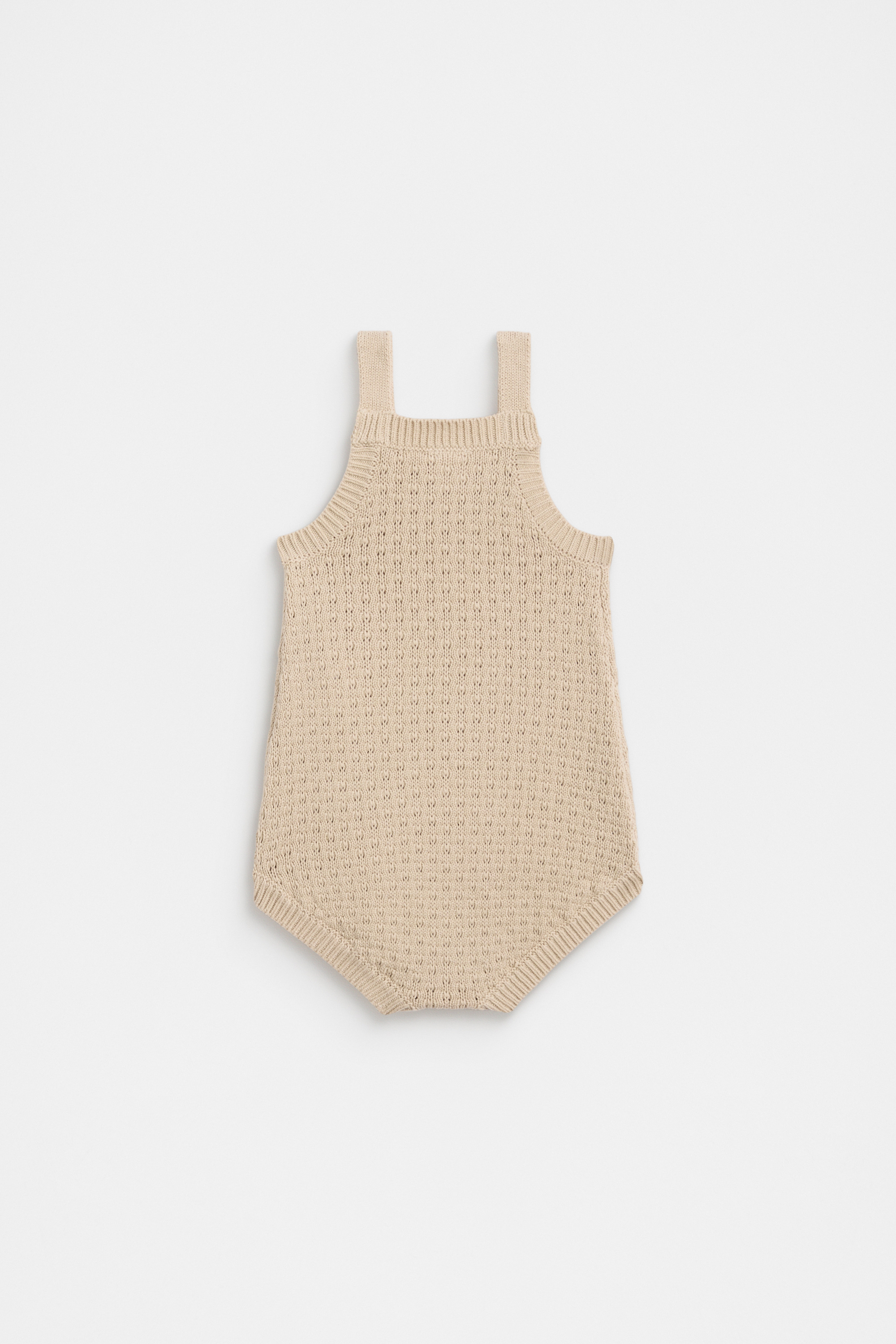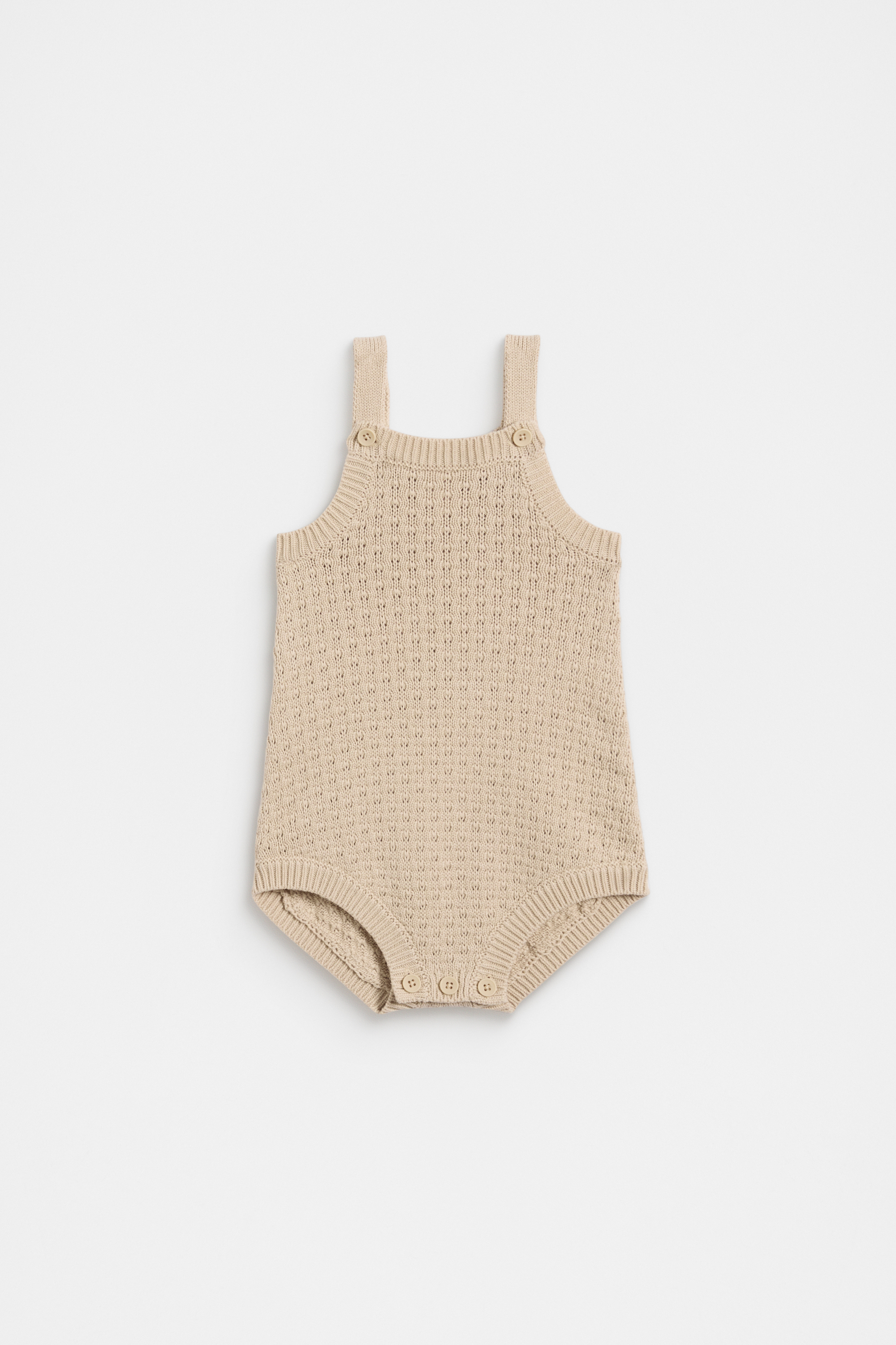 An adorable option with a ribbed finish, this romper is the cutest addition to their wardrobe. Crafted in premium cotton, it features thin straps and gusset buttons for quick and easy changes.