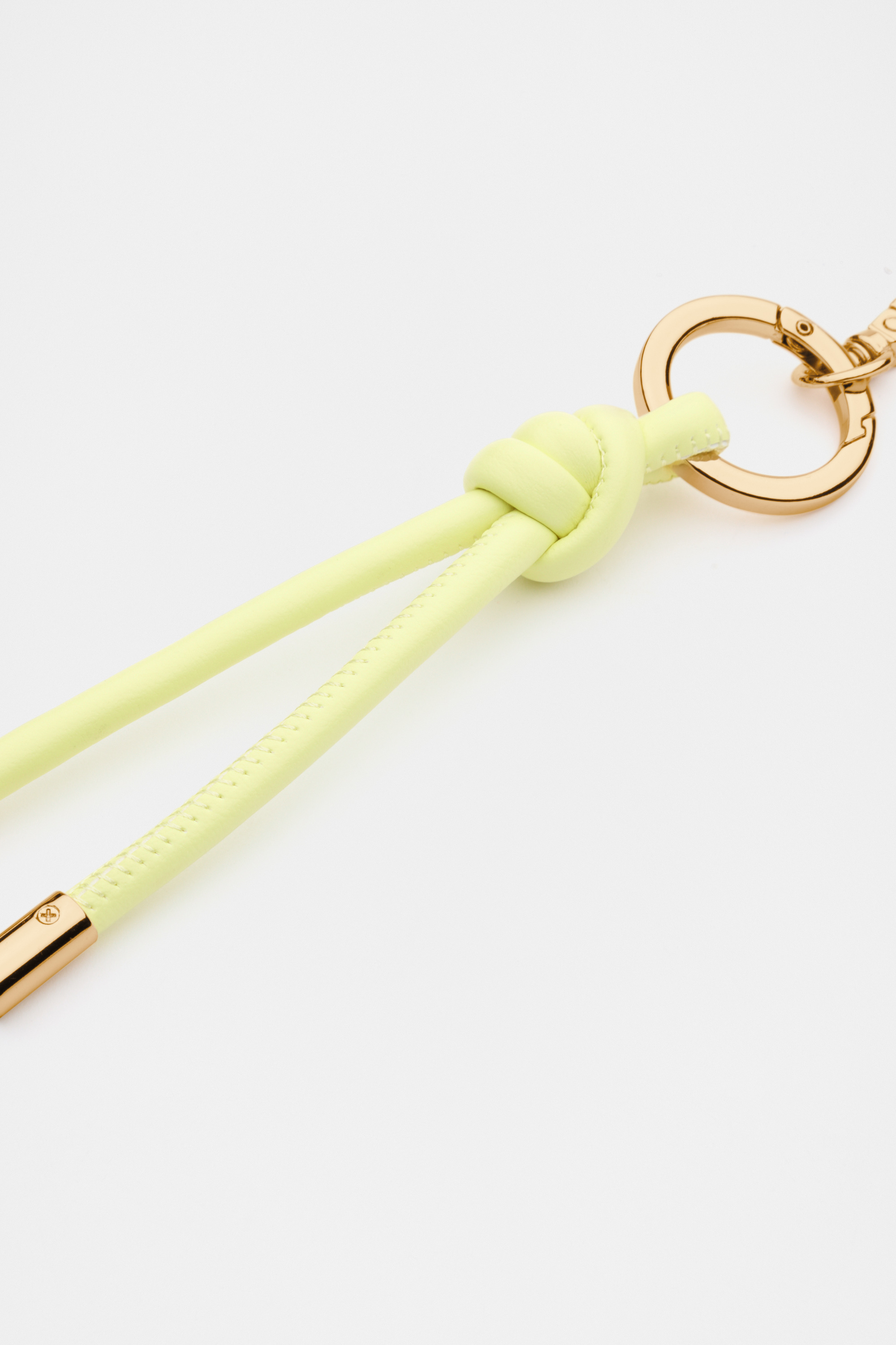 Keep your keys together with this modern keyring, detailed with a knot design. It secures with a parrot clasp.