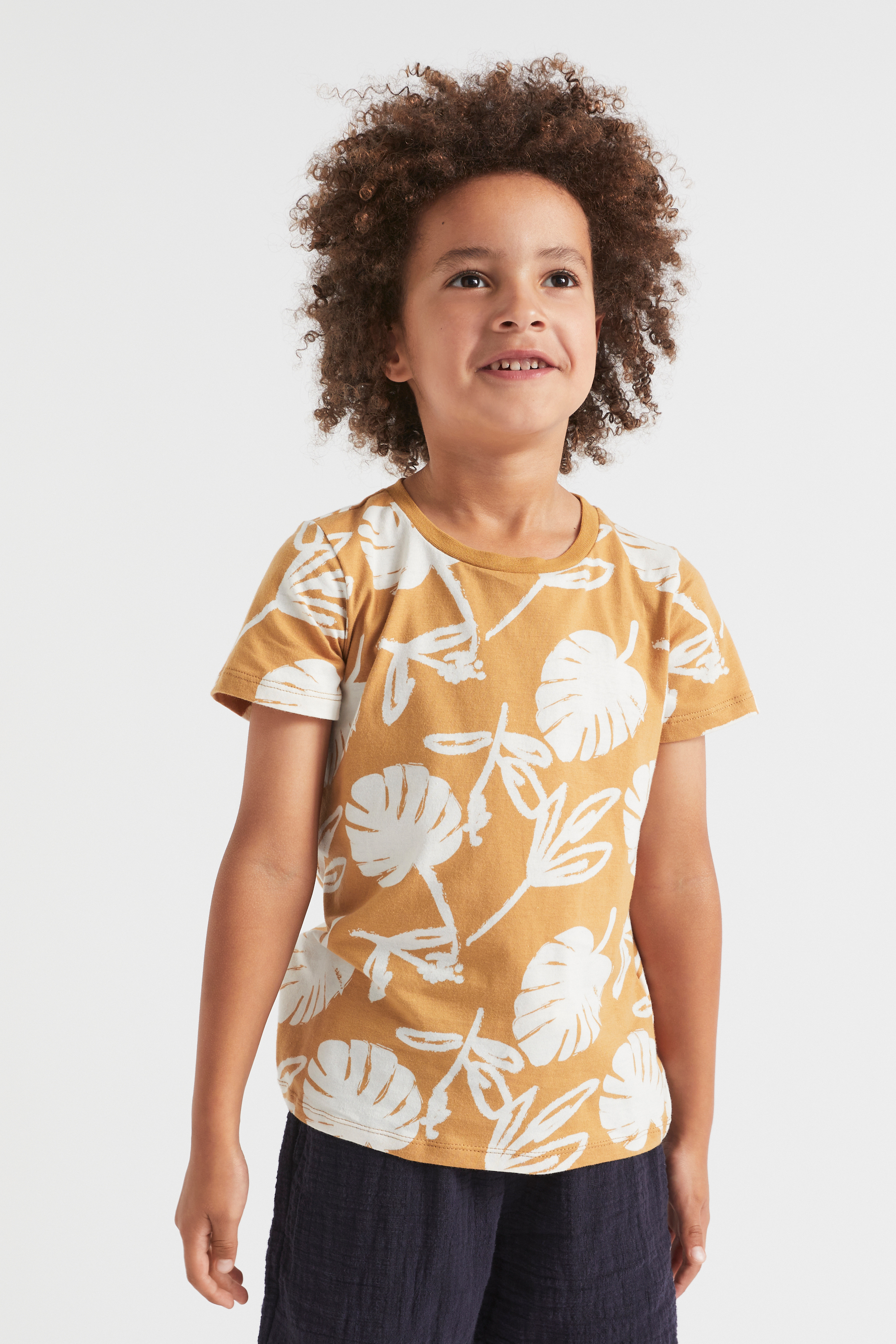 A classic crew neck T shirt with short sleeves and a relaxed fit, this piece is perfect for sunny days. An all over pattern of monstera leaves adds a tropical touch to the neutral colourway. Crafted from 100% cotton.