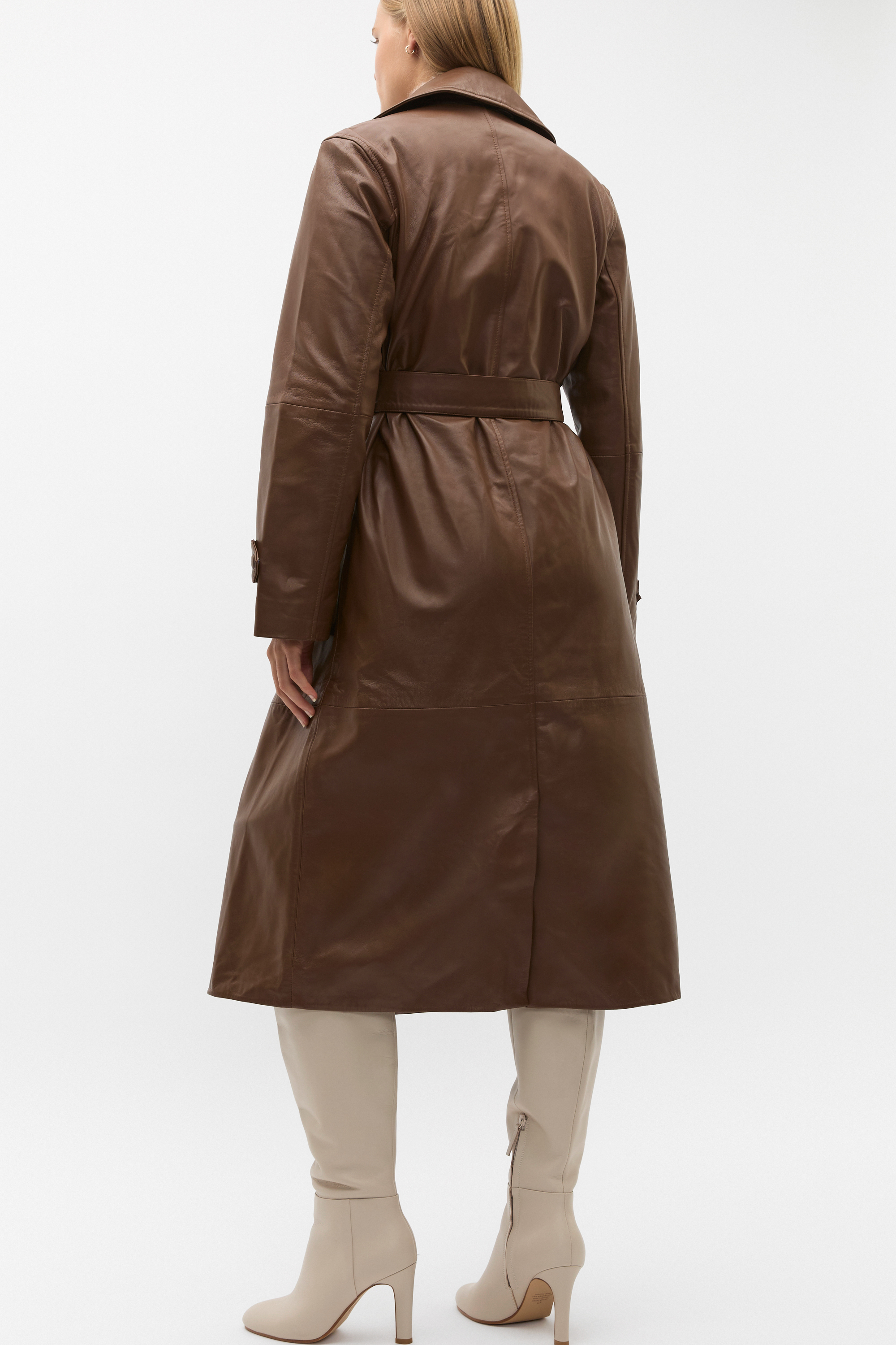 Offering elegance, enduring style and impact in your winter wardrobe, our leather belted trench coat represents pure excellence in outerwear. An investment piece crafted in 100% leather, it features a notched lapel, long sleeves with adjustable cuffs, angled pockets and a belt. As a proud member of Leather Working Group, Seed supports their mission of greater transparency and continuous improvement, helping to create more responsible leather production. For more information, please visit Leather Working Group.
