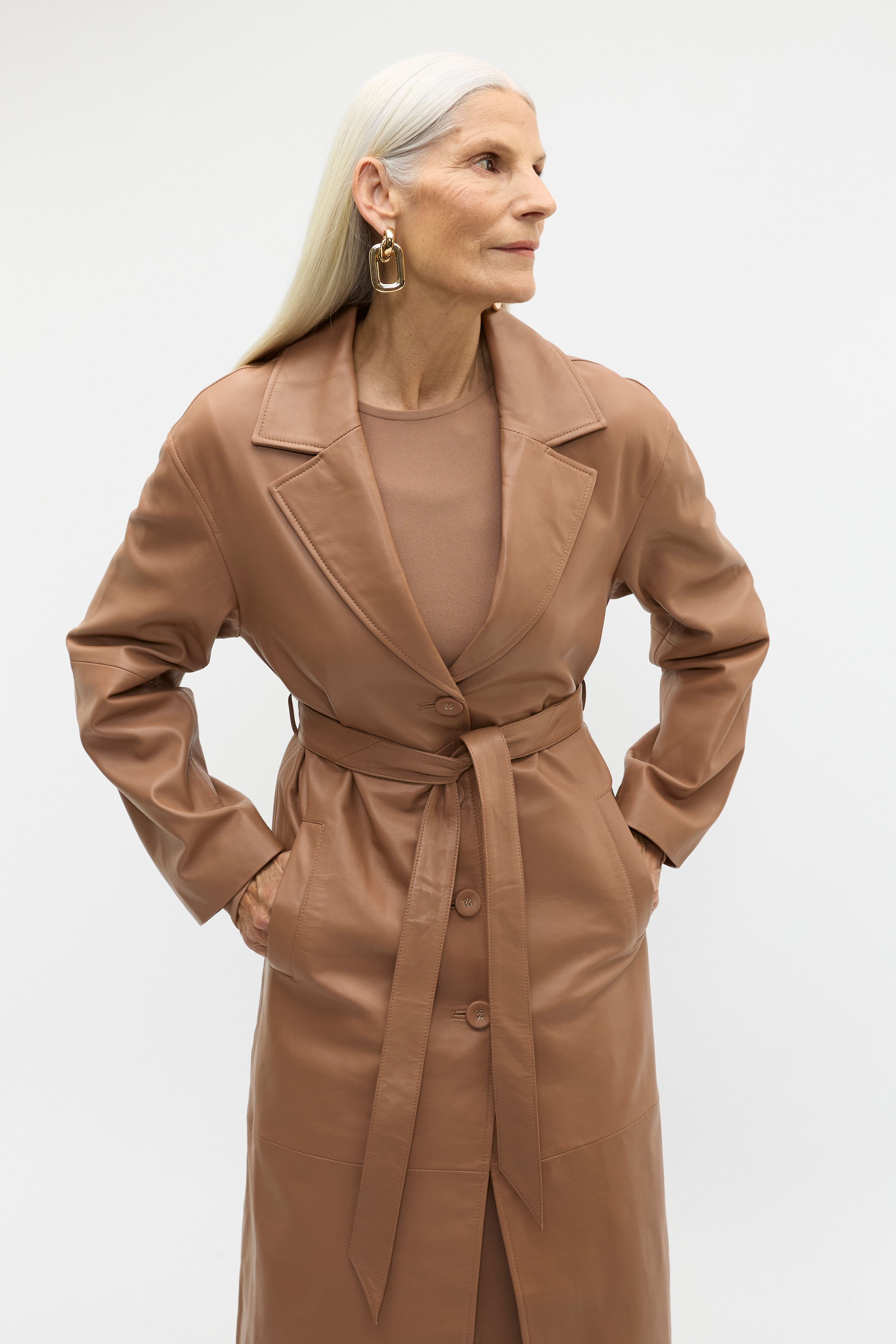 This leather coat is the ultimate statement piece to complete your winter wardrobe. Crafted in a premium, buttery soft leather, it features notched lapels, long sleeves, a button front and angled pockets. It's also fully lined and in a longline cut, it offers versatile styling. As a proud member of Leather Working Group, Seed supports their mission of greater transparency and continuous improvement, helping to create more responsible leather production. For more information, please visit Leather Working Group.