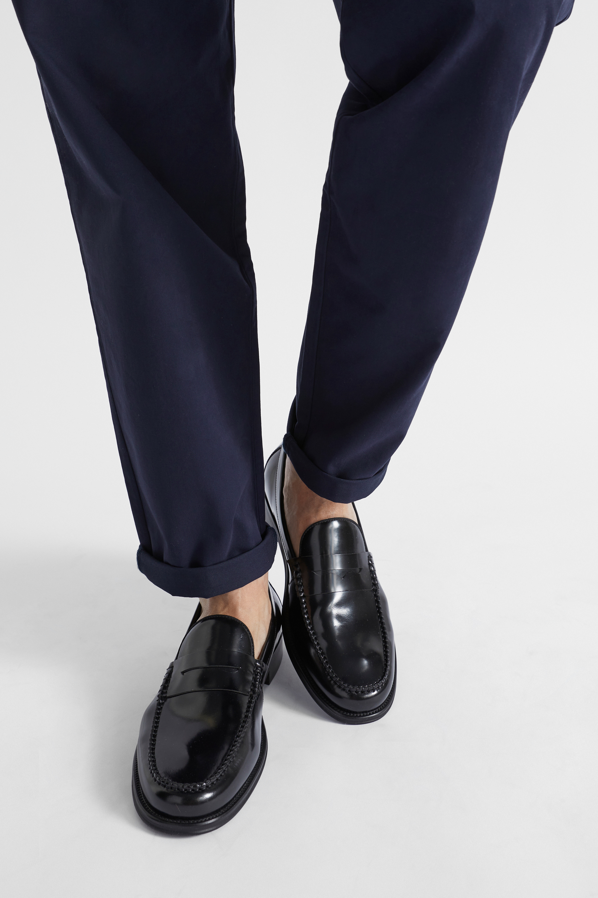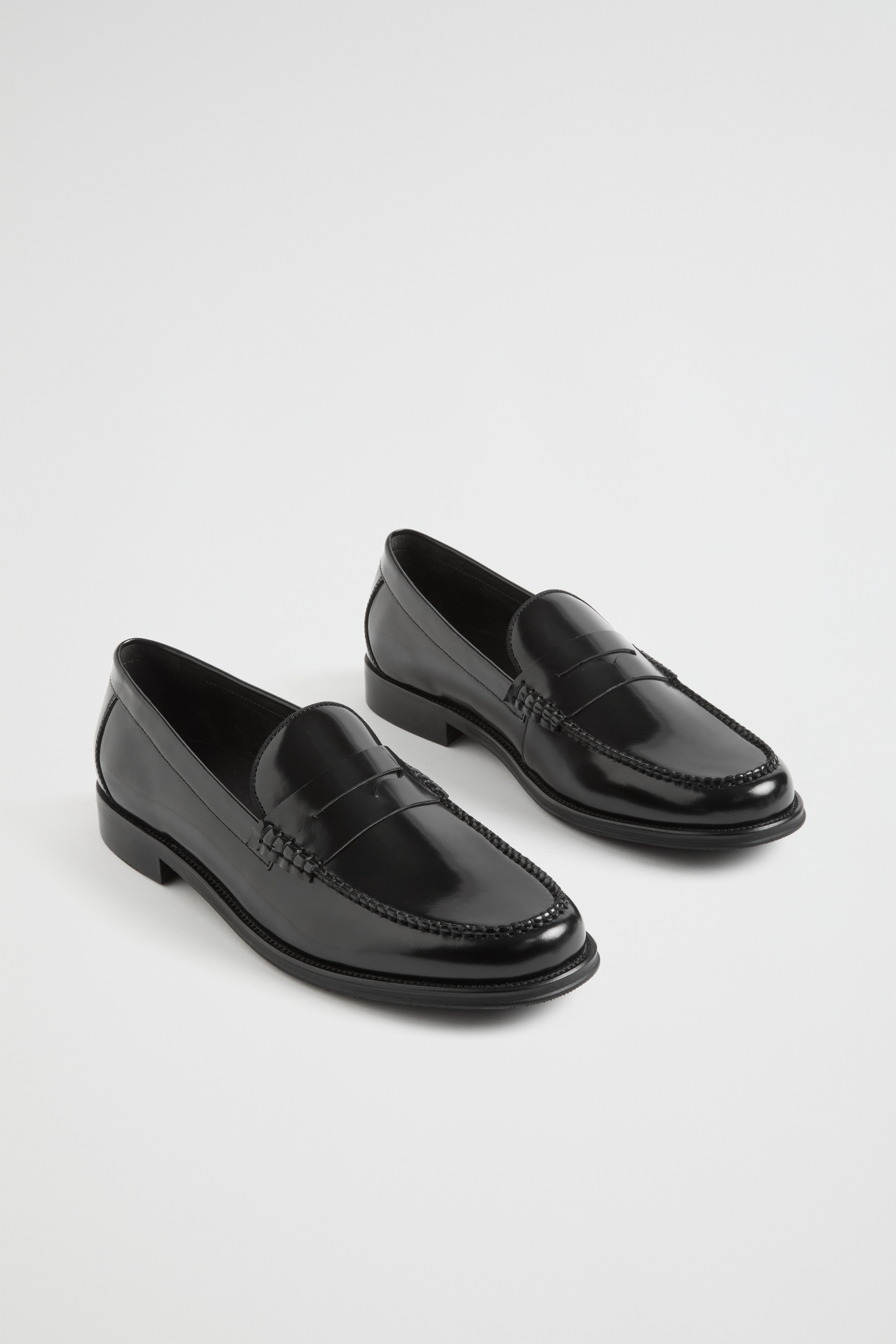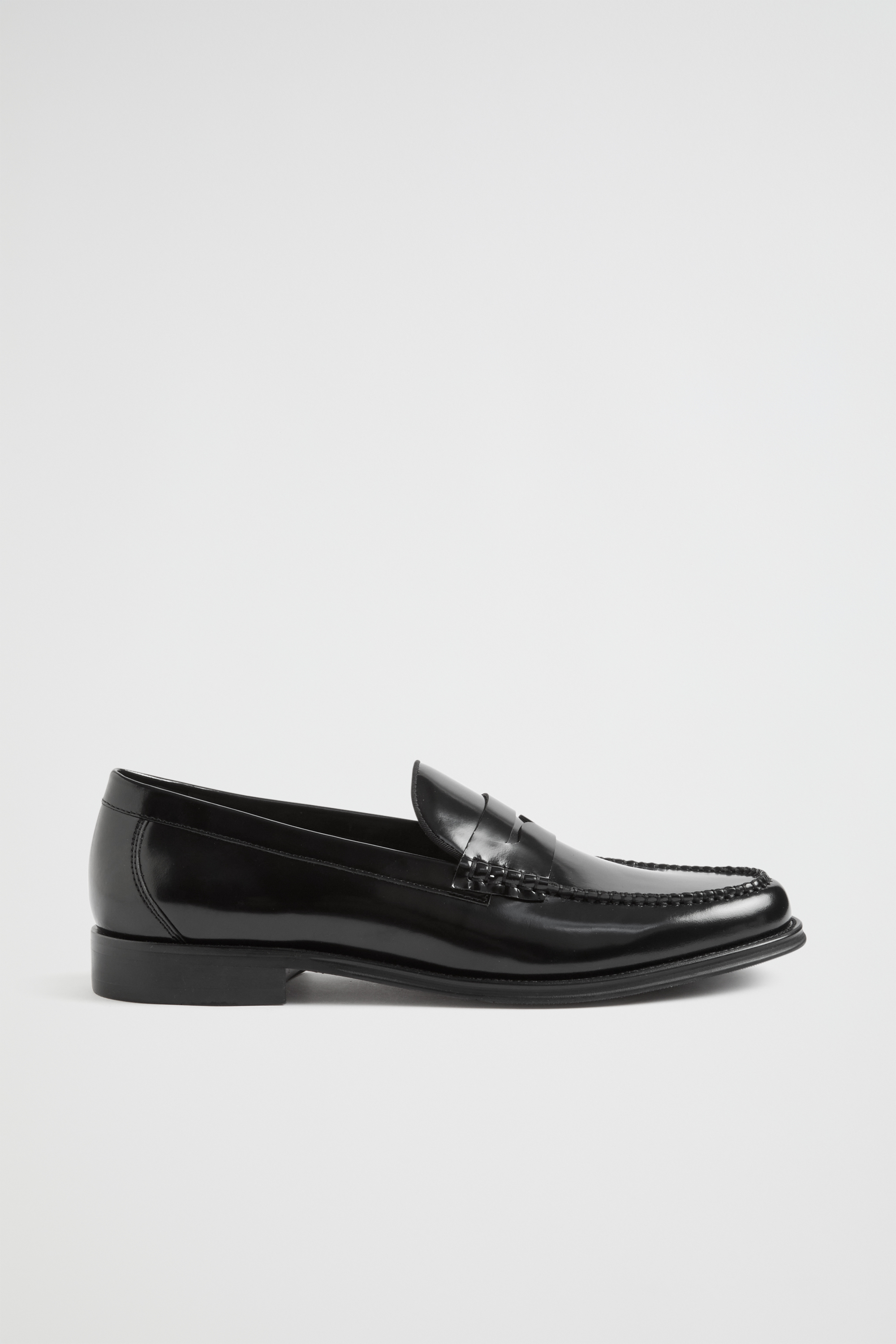 Crafted from premium leather in a high-shine finish, these loafers are a versatile style with a dressed feel. They feature a vamp detail and statement stitching.