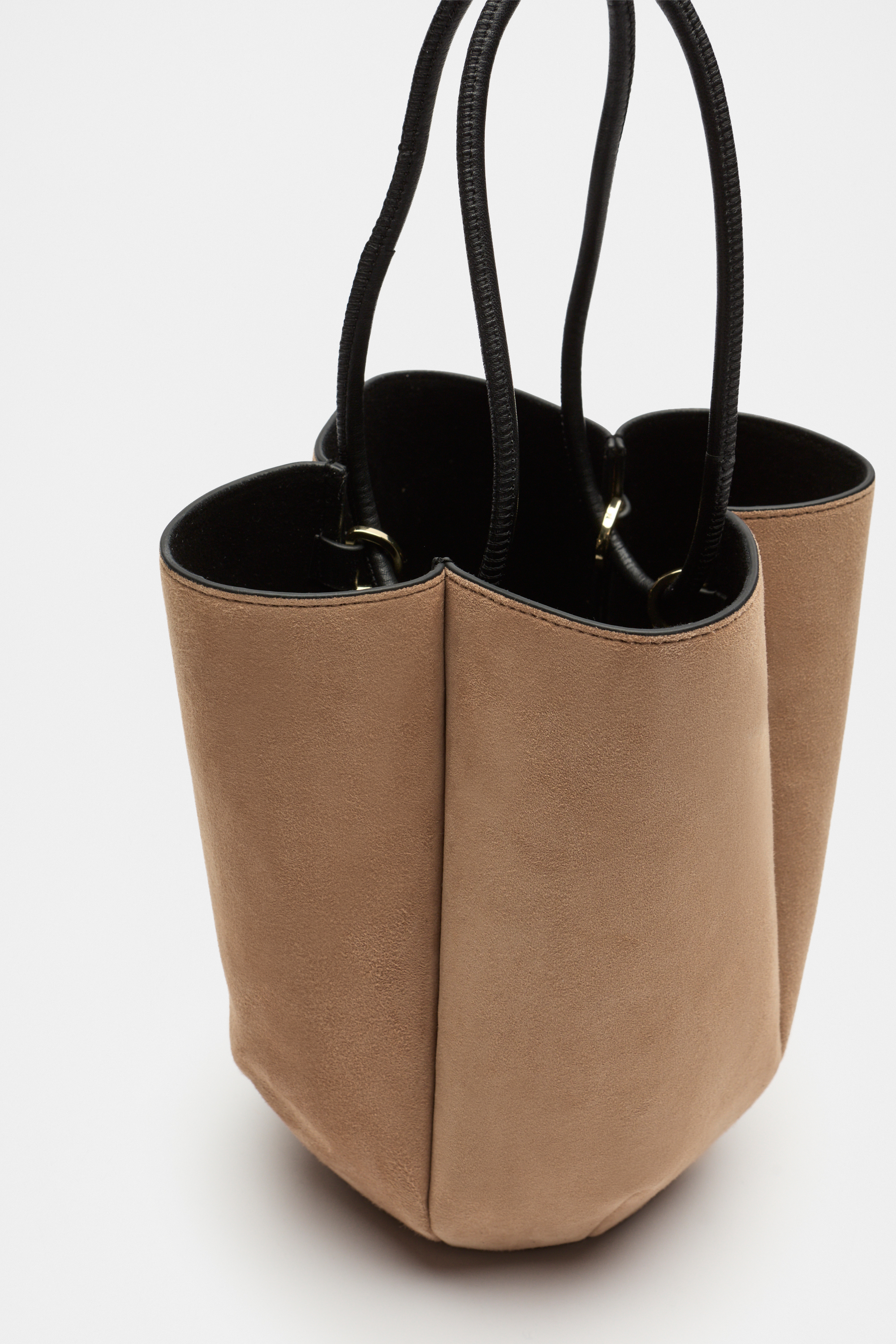 A chic and playful style, this mini bucket-bag is set to be your new go-to for a night out. Crafted in premium leather, it has a rounded base and features handheld straps with a knot detail. Tie the knotted straps together to close.