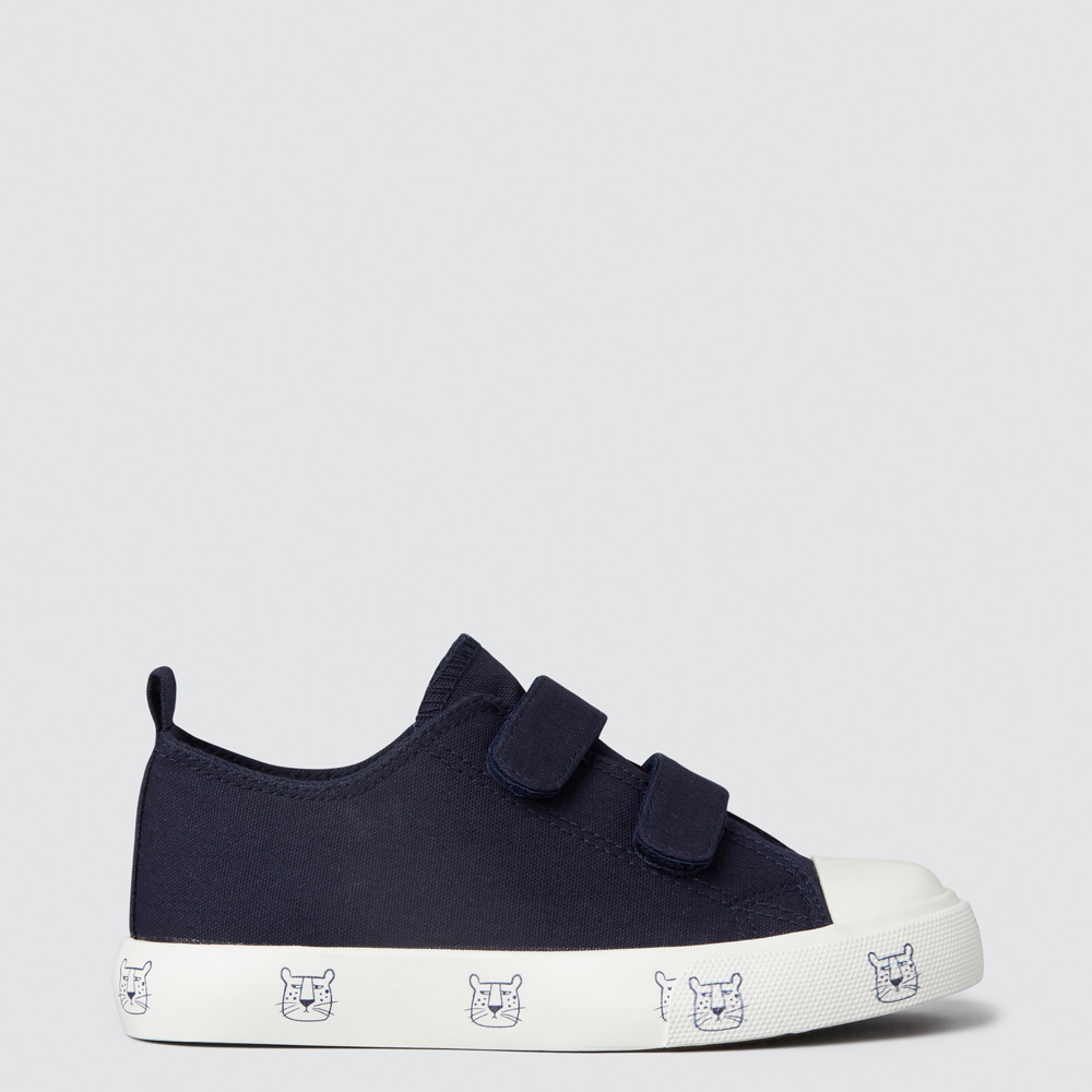 These versatile runners are perfect for everyday. With a leopard face print rubber sole and two sturdy Velcro fastenings, they are super-cool and comfy. Made with a canvas upper and a rubber sole, this shoe is available Navy and in sizes 23 to 32.