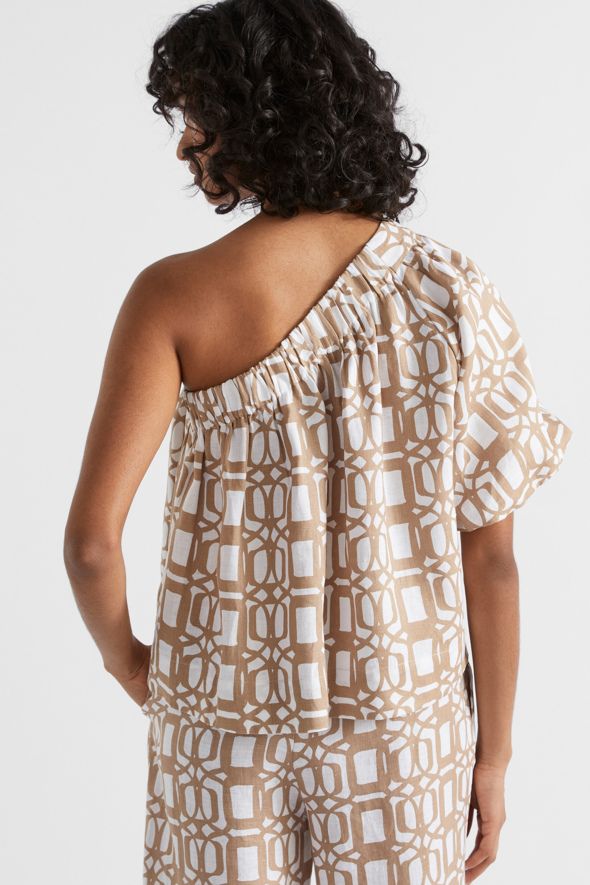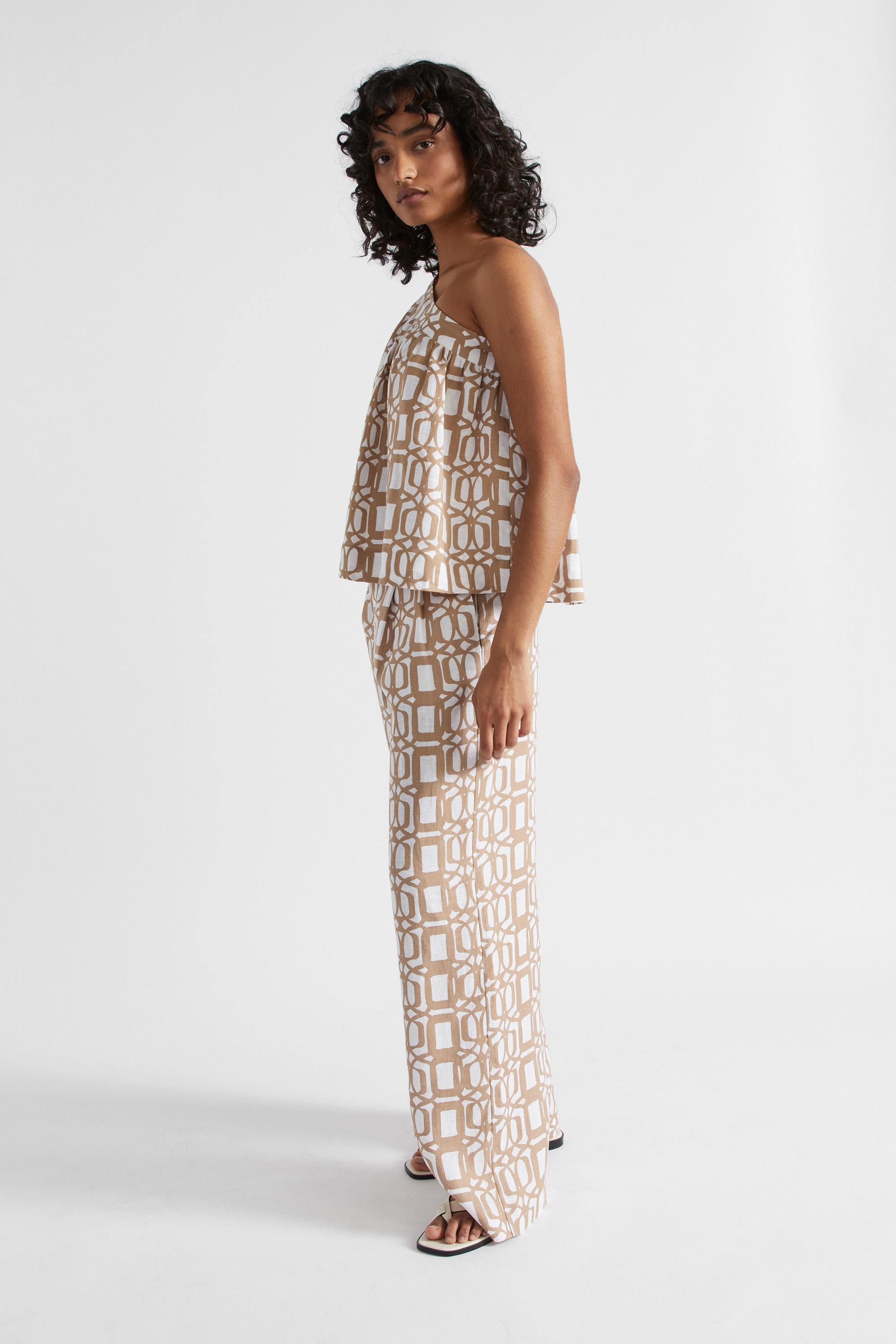 Crafted from premium French linen and featuring our statement retro geometric print, this top is a summer essential. It is lined in cotton and features a single puff sleeve, with a breezy, off-the-body cut ideal for hot days. Pair with the matching shorts for a complete look.