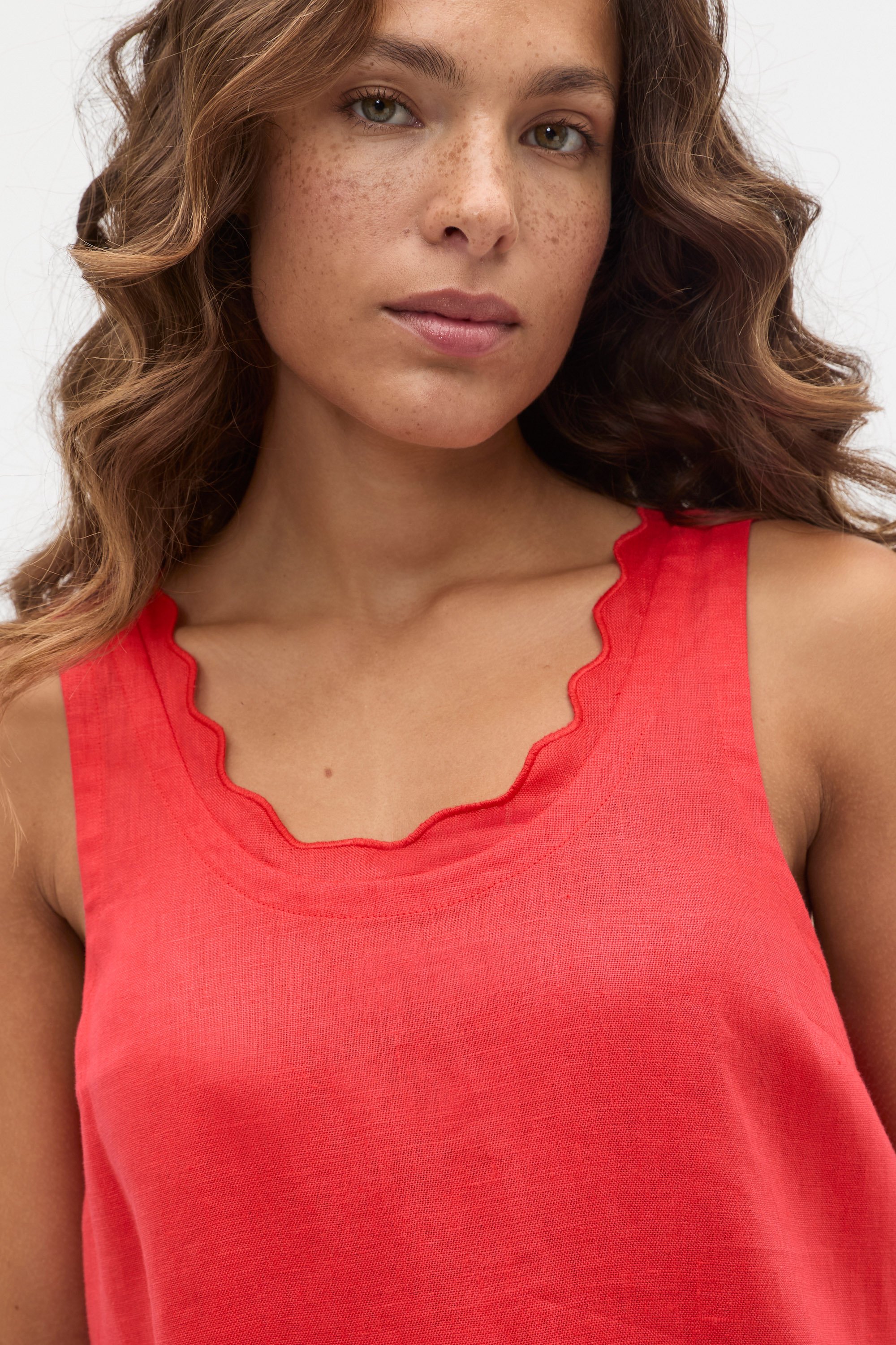 Simple and chic, this dress is set to be your new favourite for summer. Crafted in linen, it's a sleeveless style and features a scoop neck with a scallop trim and falls to a mini length.