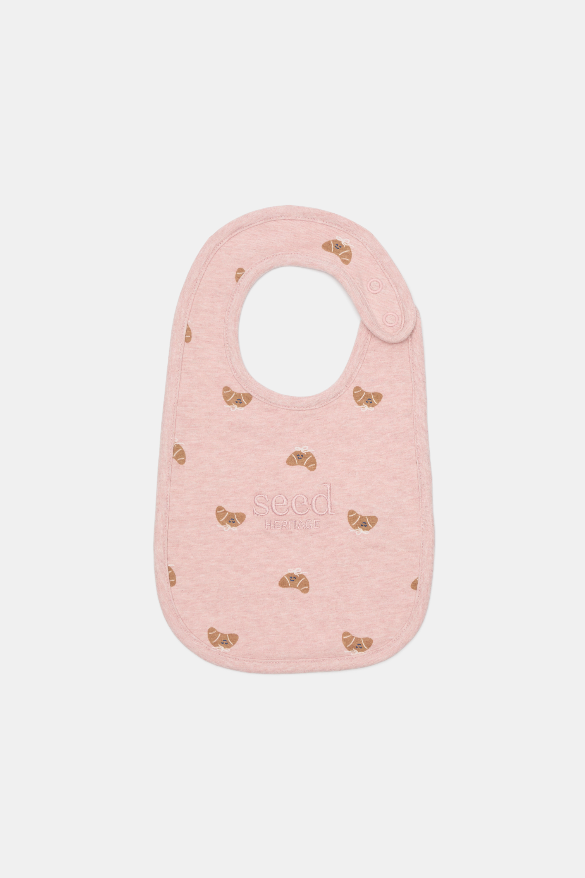 Logo Croissant Bow Bib  Blush Pink Marle  hi-res Logo Croissant Bow Bib  Blush Pink Marle  hi-res