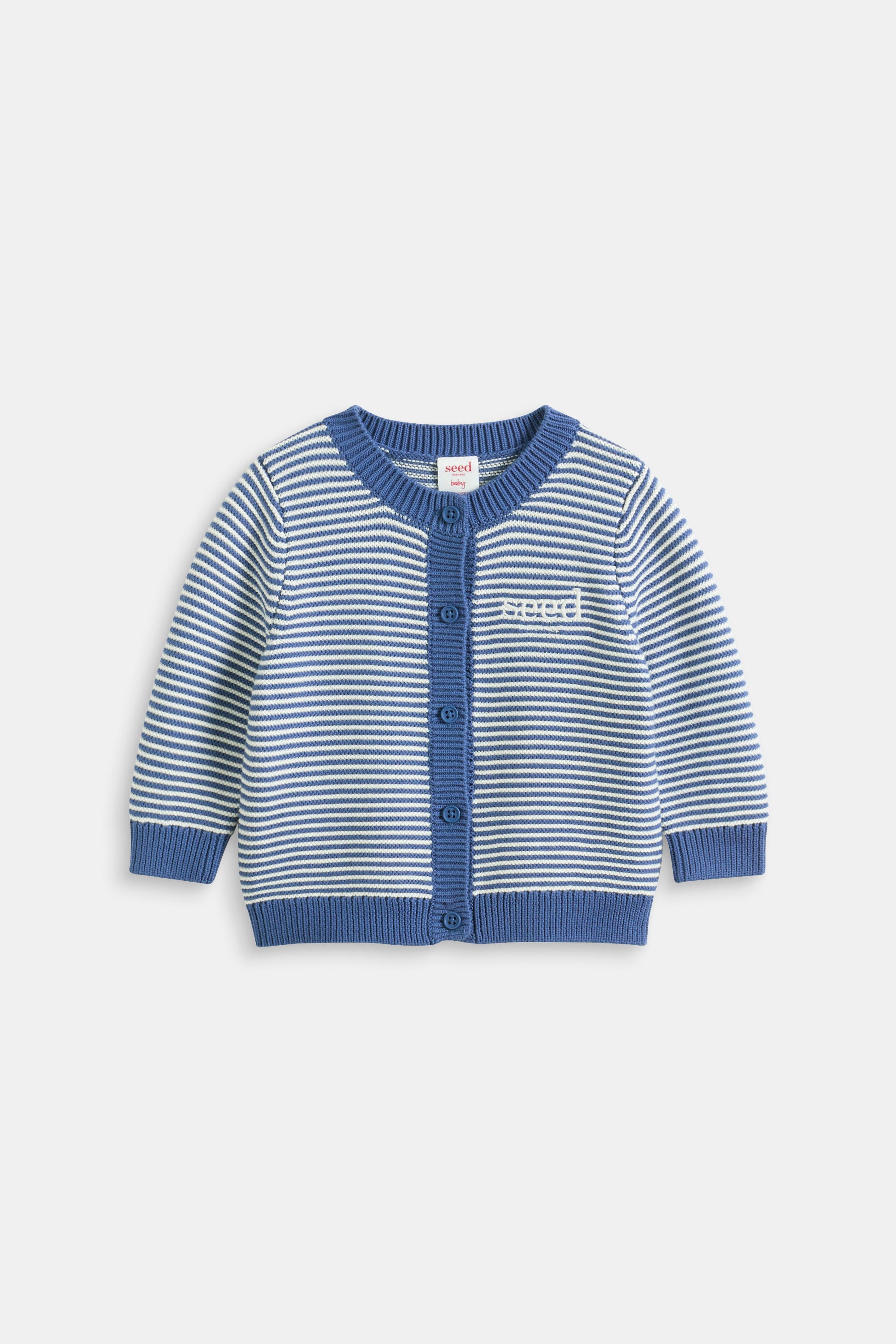 A classic design with timeless appeal, this adorable little cardigan is an absolute essential. Crafted in premium cotton with a soft knit finish, it features a round neck, long sleeves, a stripe design and an embroidered Seed Heritage logo.