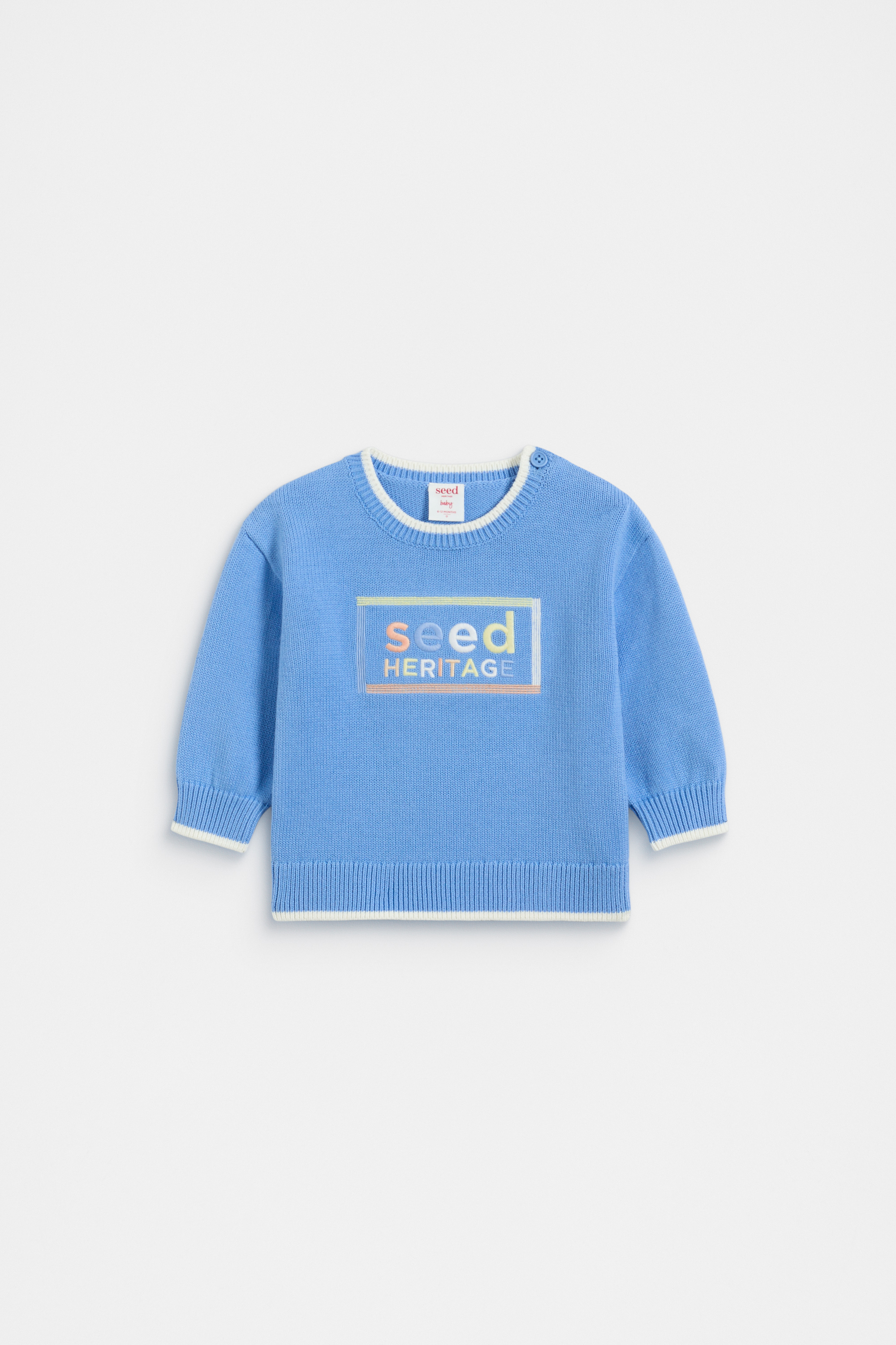 A throwback style for everyday cuteness, this sweater has a bright and colourful Seed Heritage logo and a contrast trim. Crafted in an ultra-soft premium cotton, it has a knit finish it features a round neck, long sleeves and ribbed detailing at the trims.