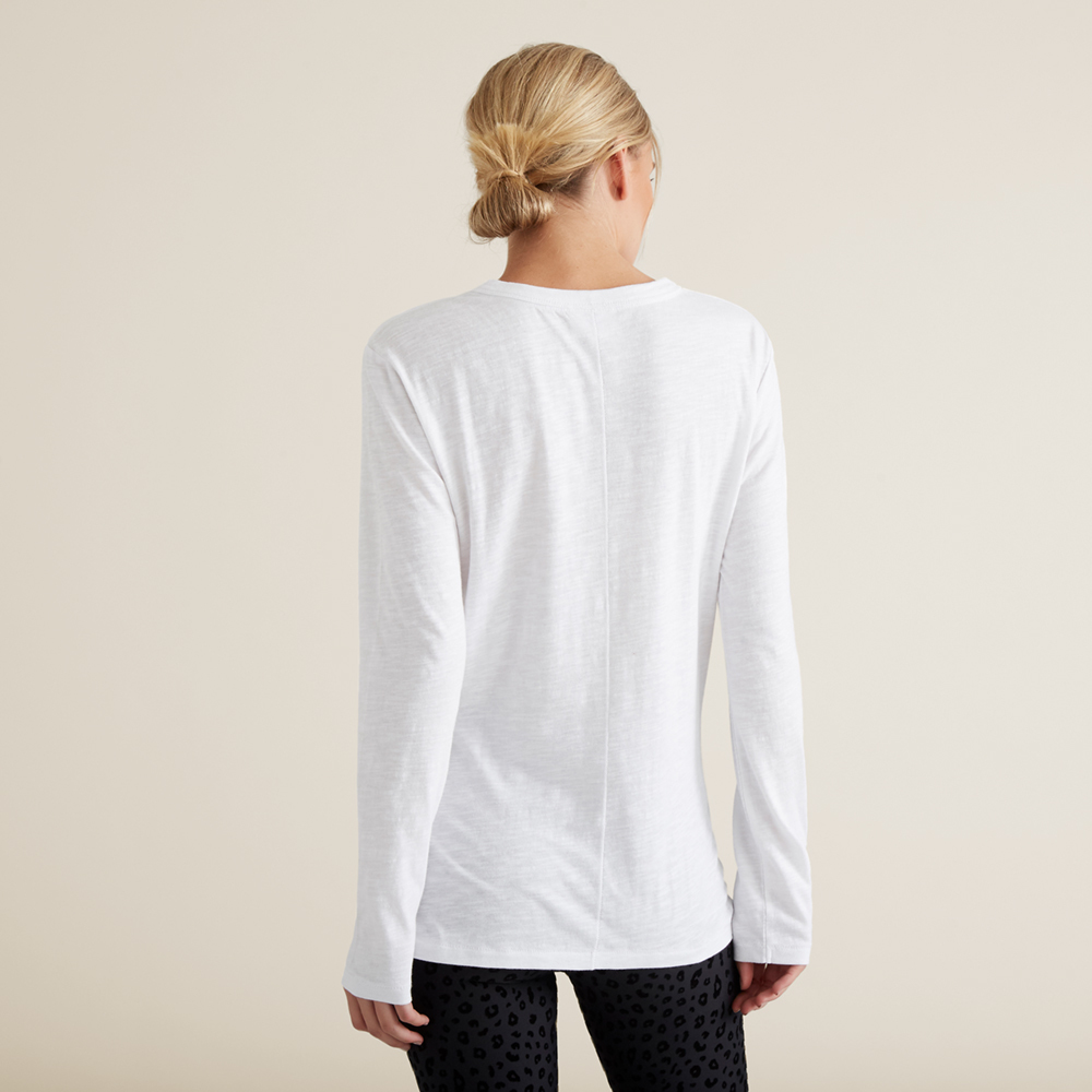 The Long Sleeve Slim Basic Tee is primed for winter training sessions. Its lightweight 100% Cotton jersey is breathable for your next daily workout. It features a long, curved hem with a circle crew neckline. Team the Long Sleeve Slim Basic Tee with Seed Sport Leggings for a polished athleisure look. The Long Sleeve Slim Basic Tee is available in sizes XS through to L. Our model wears a size 8 and is 177cm tall. Care instructions can be found inside of the garment.