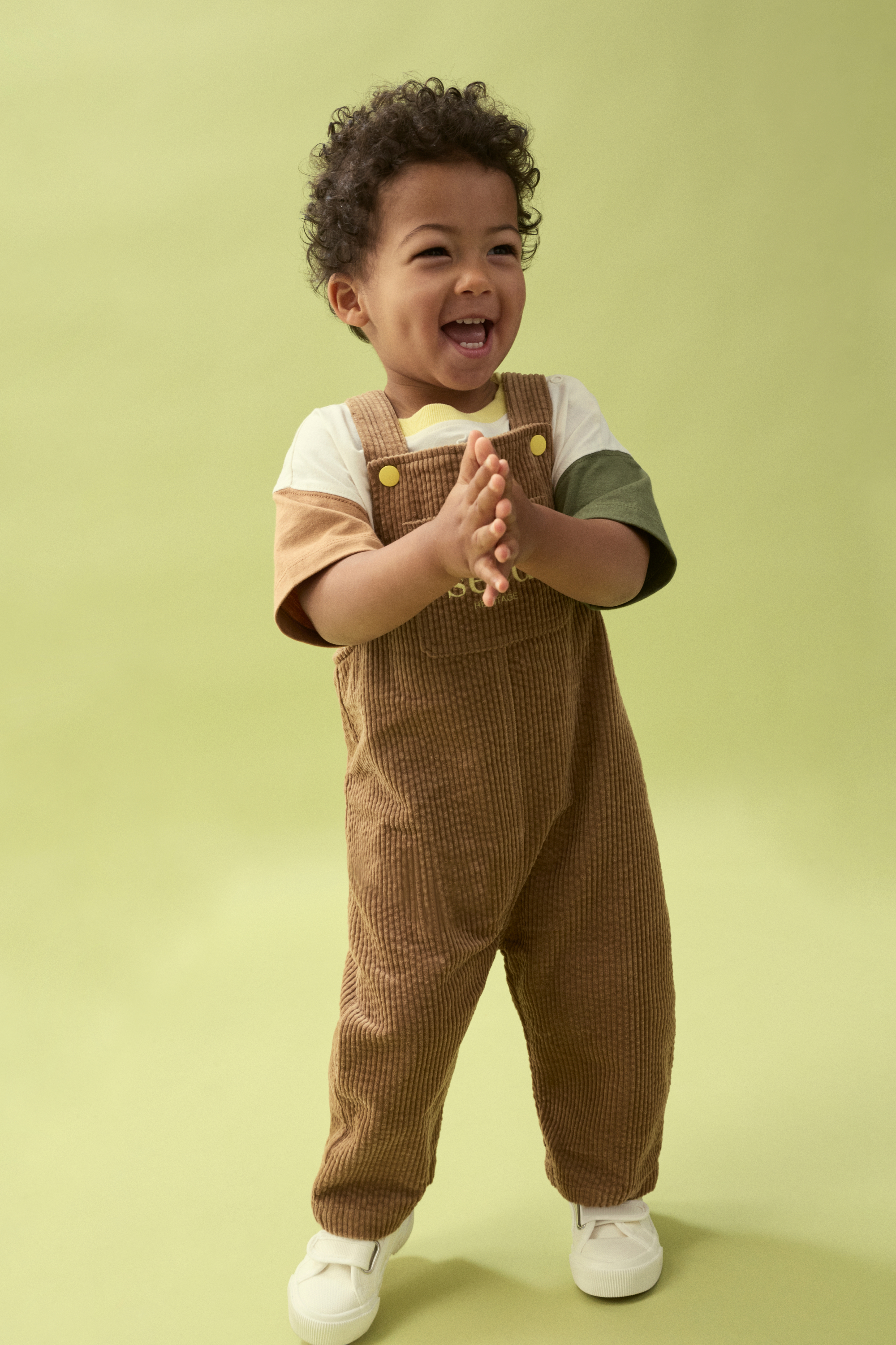 Finished with a colourblock design, this tee is a sweet addition to his little wardrobe. Crafted in cotton for an easy and comfortable wear, it features a round neck with shoulder snaps, short sleeves and a relaxed fit. With the cutest chenille dog design, it makes the perfect gift.