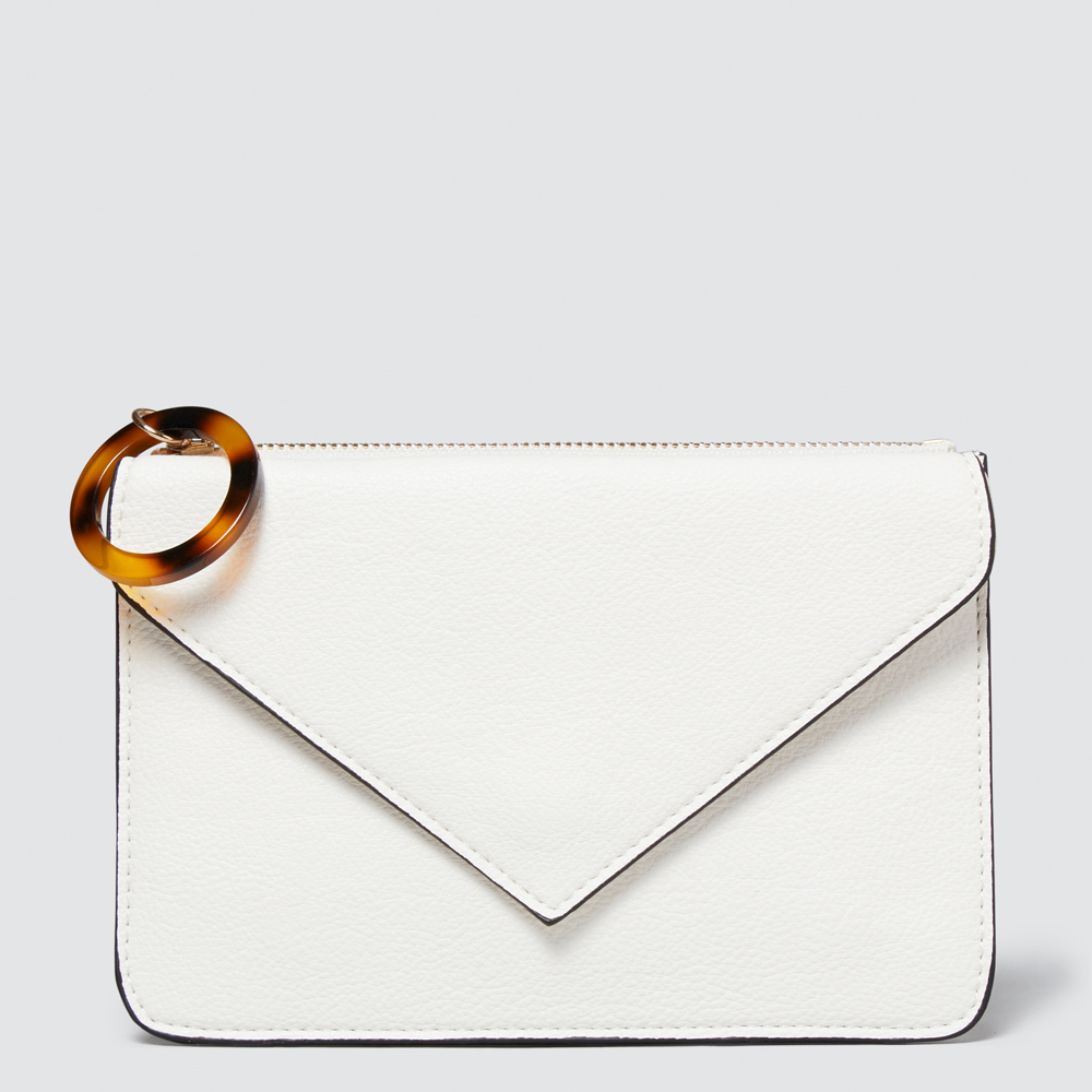 This Lou Pouch adds a sophisticated touch to your daily essential carry-all. It features an envelope style clutch, fitted with a tortoiseshell ring and secure press stud closure. Detailed with faux suede, The Lou Pouch is available in four colour ways and available in one size.