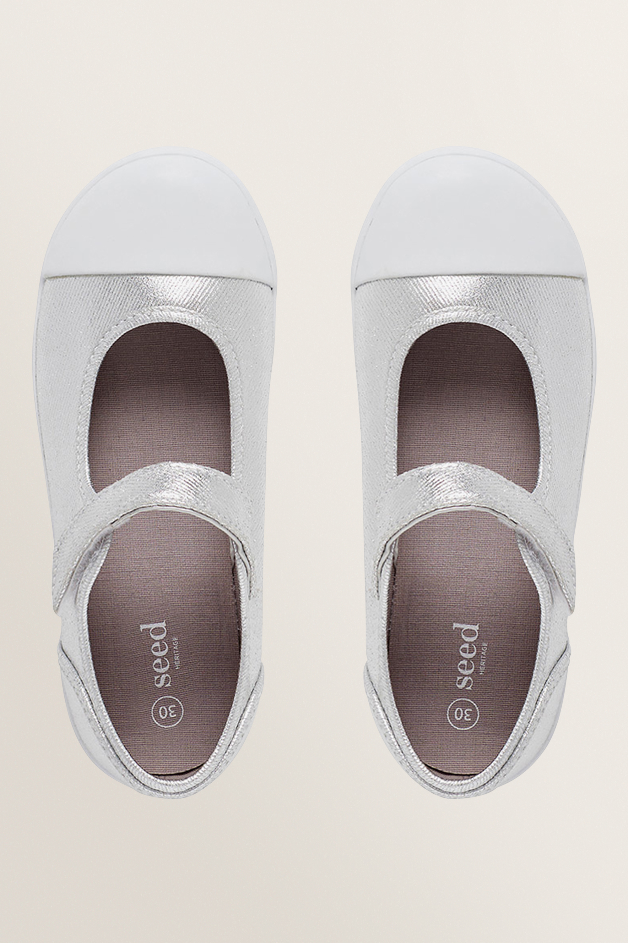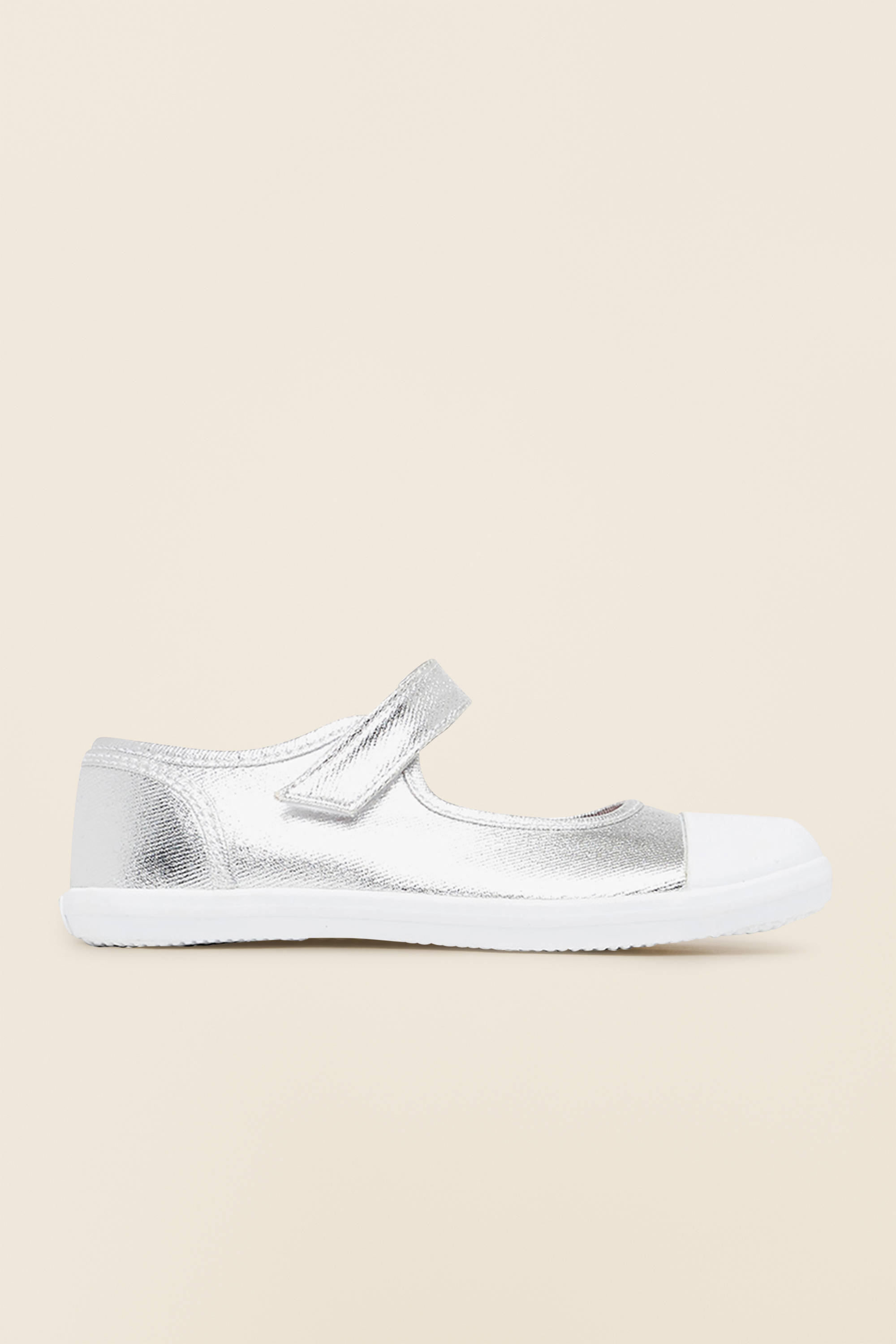Perfect for dressing up or everyday wear, these Mary Jane canvas shoes will be a wardrobe staple. The flat soled style has a strap across the front, with a hook and loop fastening to keep them in place and is designed with a contrast toe cap.