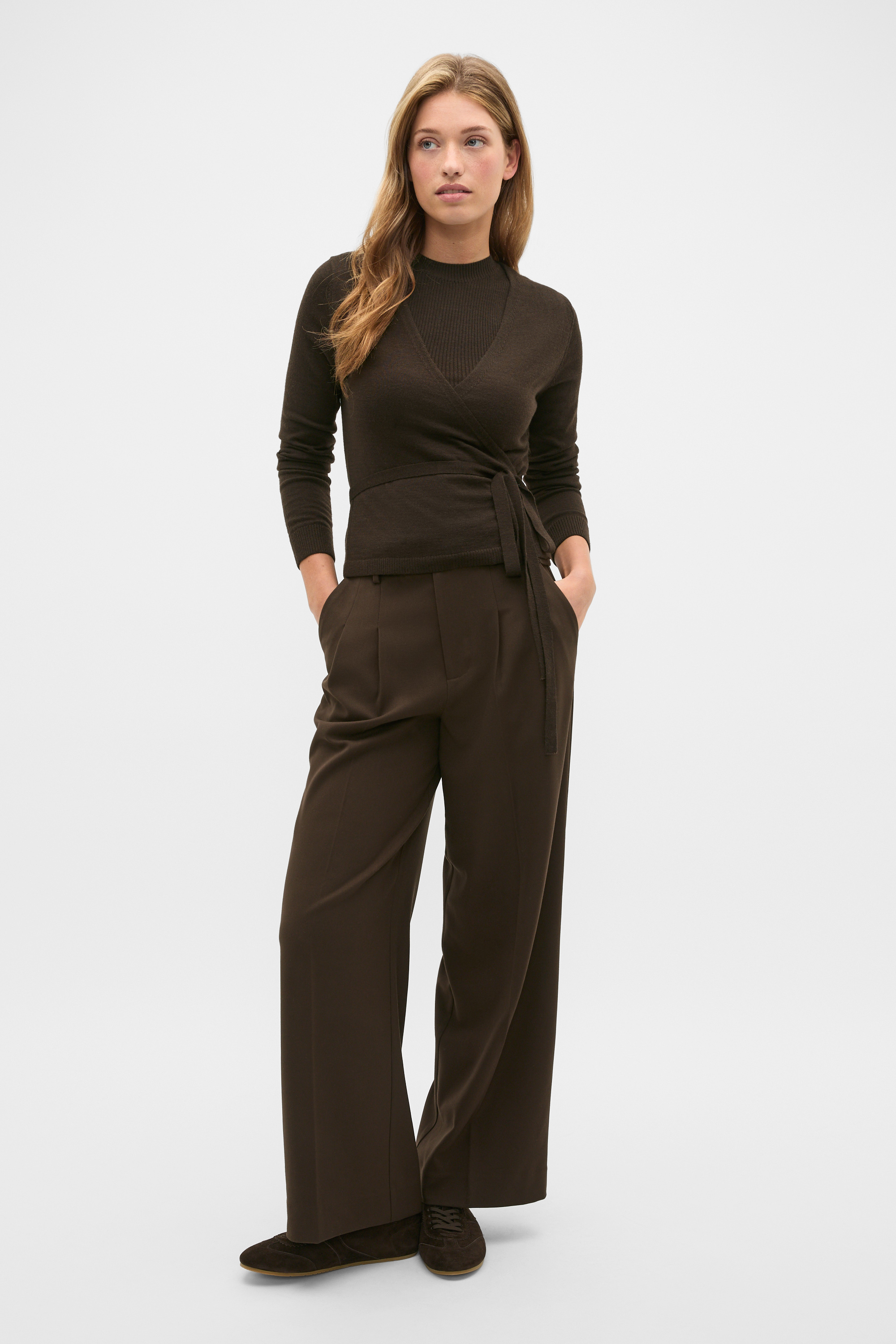 A flattering design to elevate your everyday wear, this knit set is crafted in premium Australian Merino wool and is destined to become a new favourite in your wardrobe. It features two tops designed to wear together, a ribbed tank and a wrap top with long sleeves that secures with a tie around the middle.