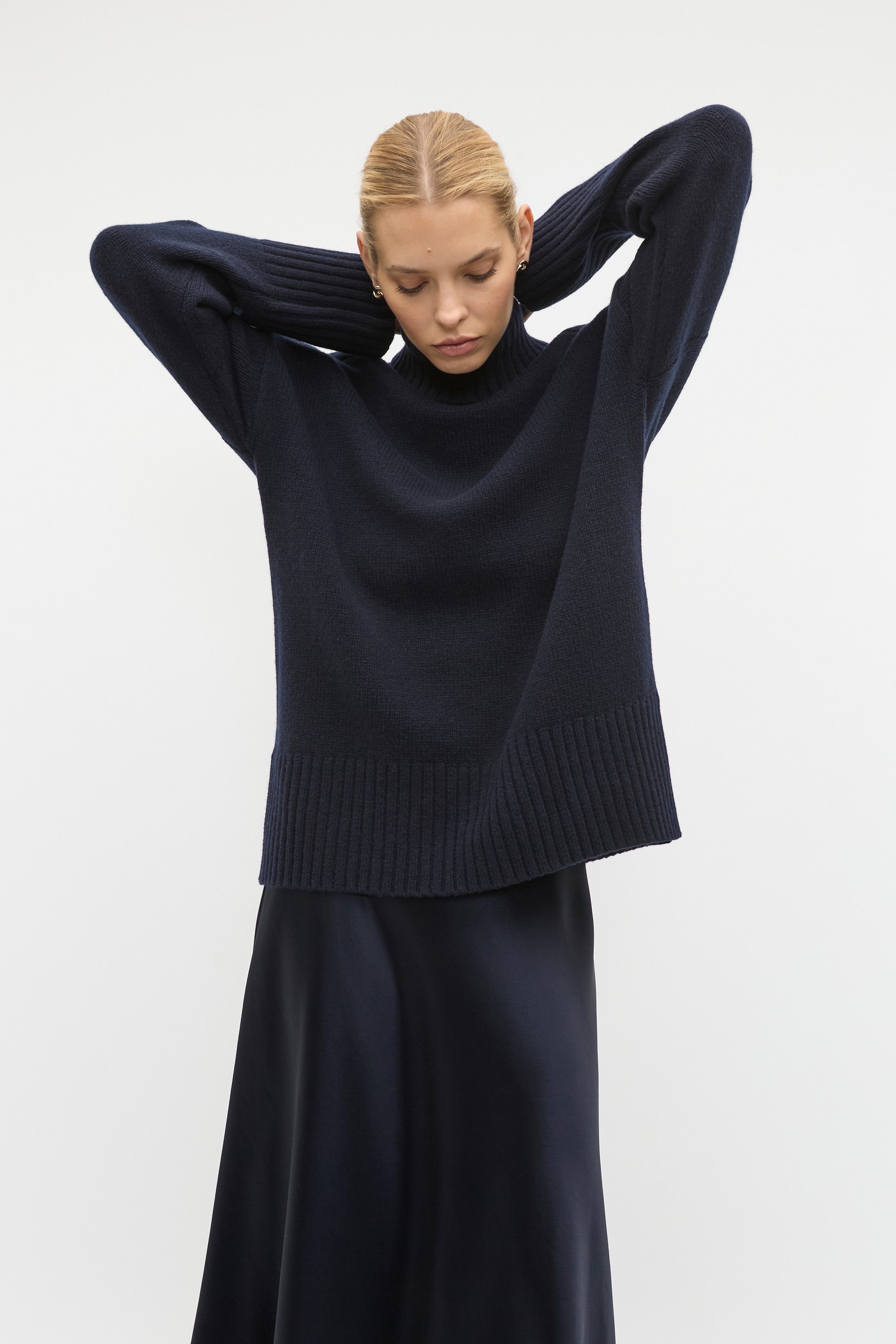 A must-have for the changing seasons, this roll-neck is an instant classic, a luxe moment for your casual wardrobe. Crafted in premium Australian merino wool, it has a relaxed feel and features a roll neck, long sleeves and ribbed trims. It has splits at either side for ease and movement.