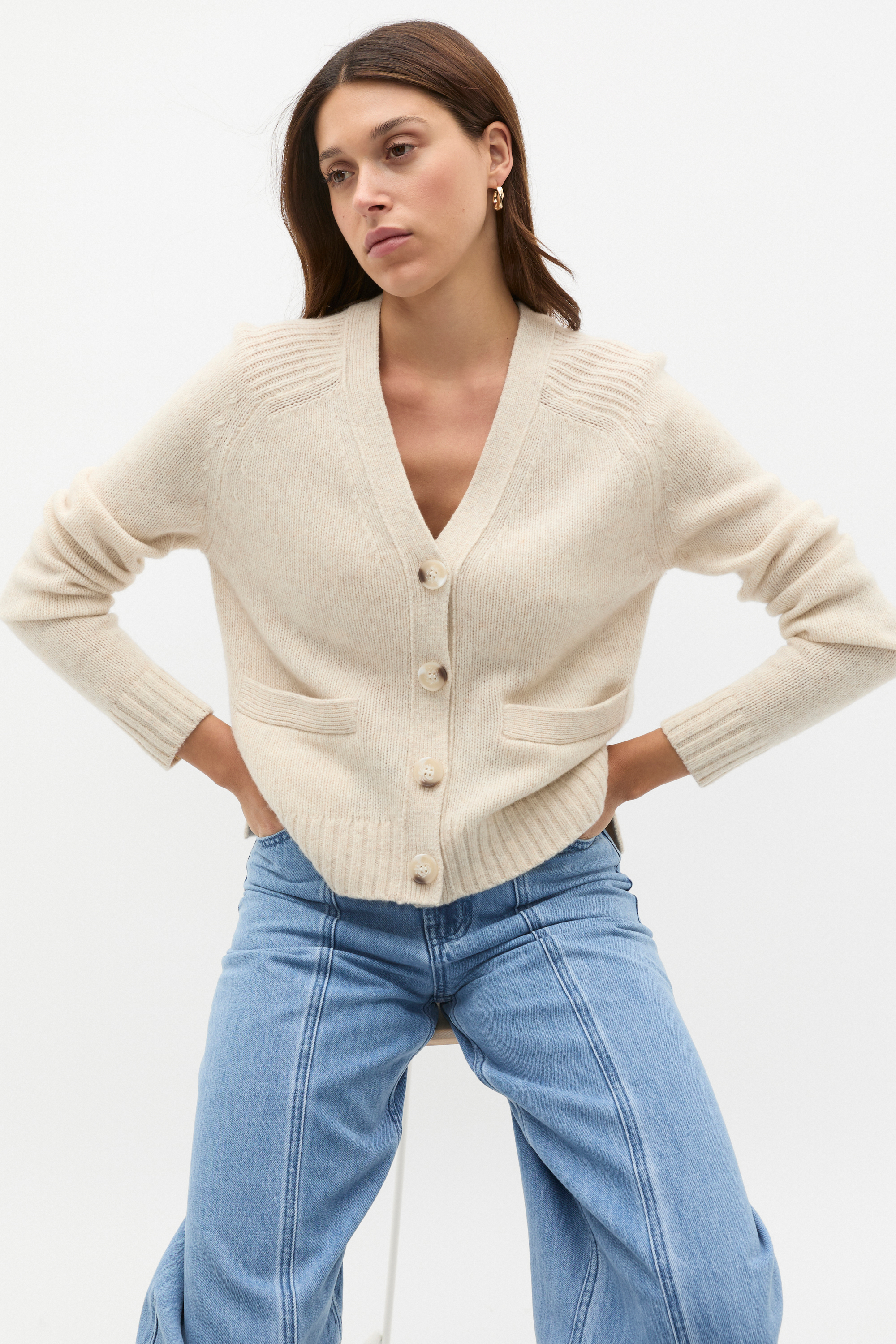 A stylish option for your winter-ready wardrobe, this cardigan is crafted in Australian Merino wool for a luxe finish. It features a V-neck, long sleeves with ribbed cuffs, a button front and pockets. Available in different colours, it offers versatility and effortless sophistication.