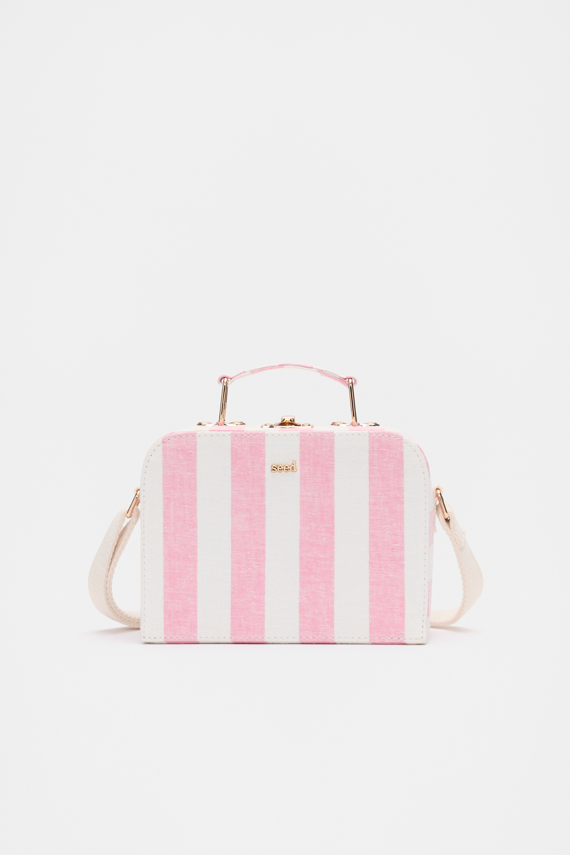 Especially designed just for her, this case is finished in a sweet candy stripe. Designed to match our apparel and accessories, it features a fabric outer, an adjustable crossbody strap, and a metal closure.