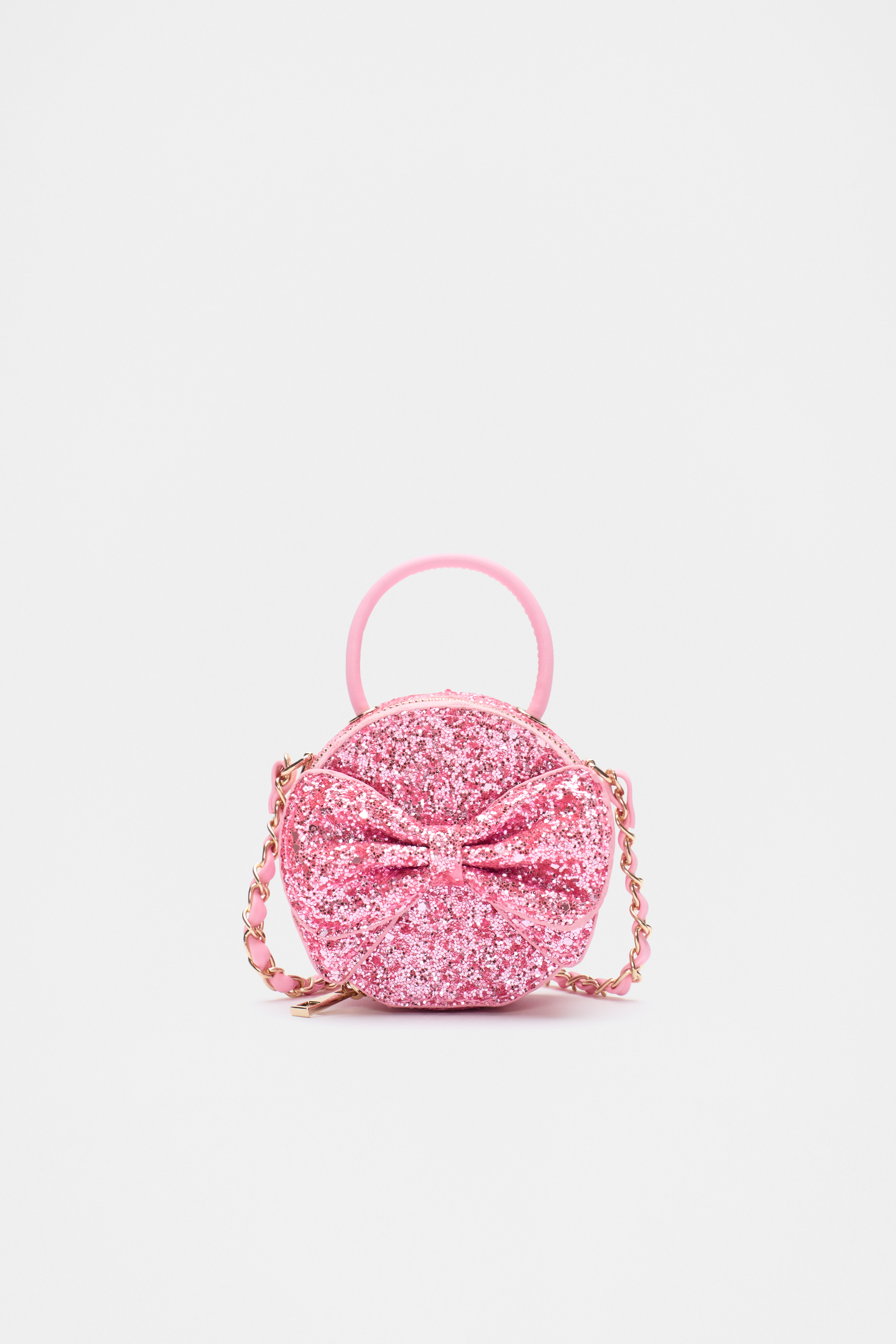 Perfect for special occasions, this bag features a braided chain crossbody strap, a short top handle, and a zip closure. With a puffy bow design, it can be worn with the matching shoes and hair accessories for a complete set.