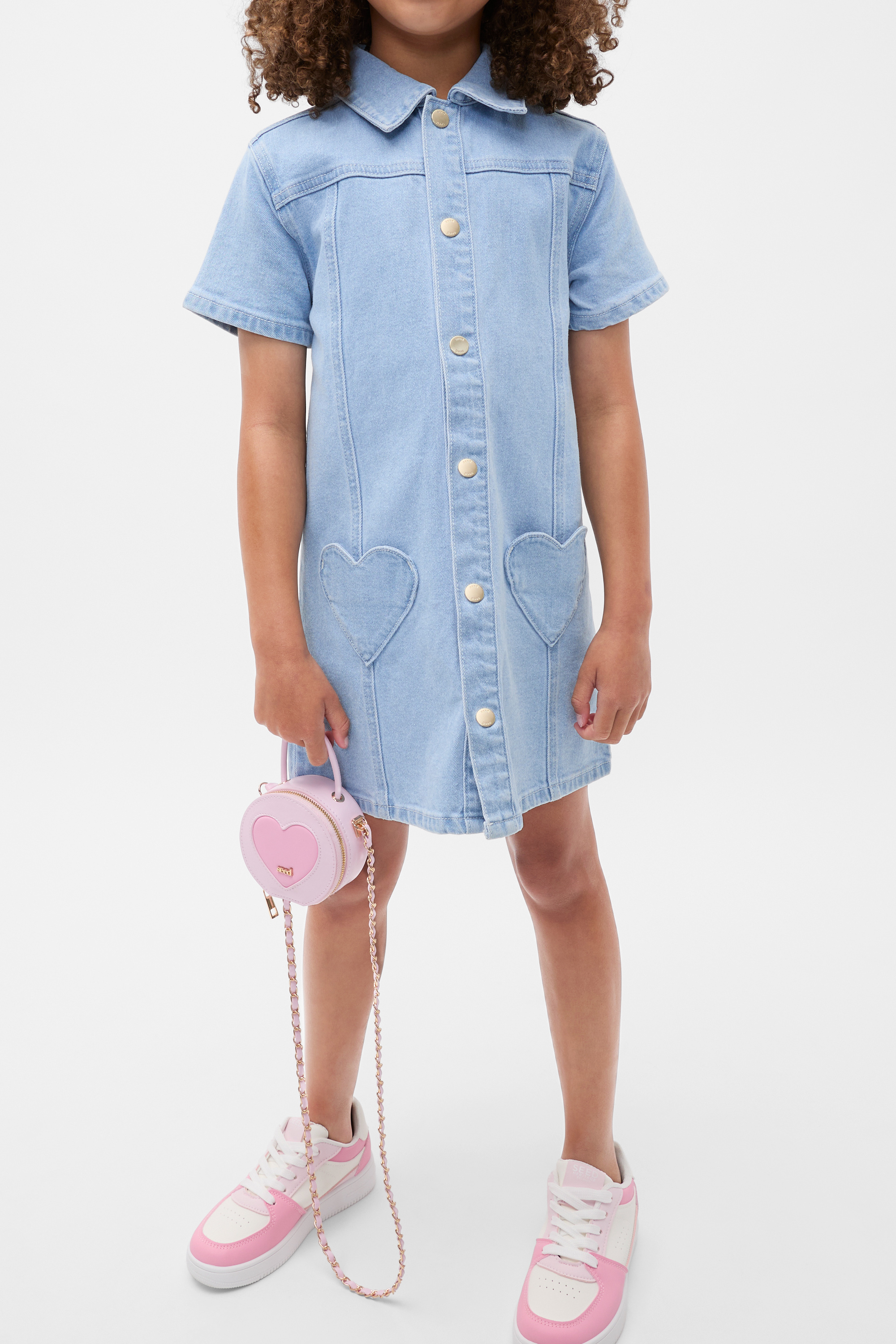 Pretty in pink, this little bag is one they'll always treasure. It has an embroidered heart design and has a short carry handle as well as a crossbody cord. Secures with a zip closure.