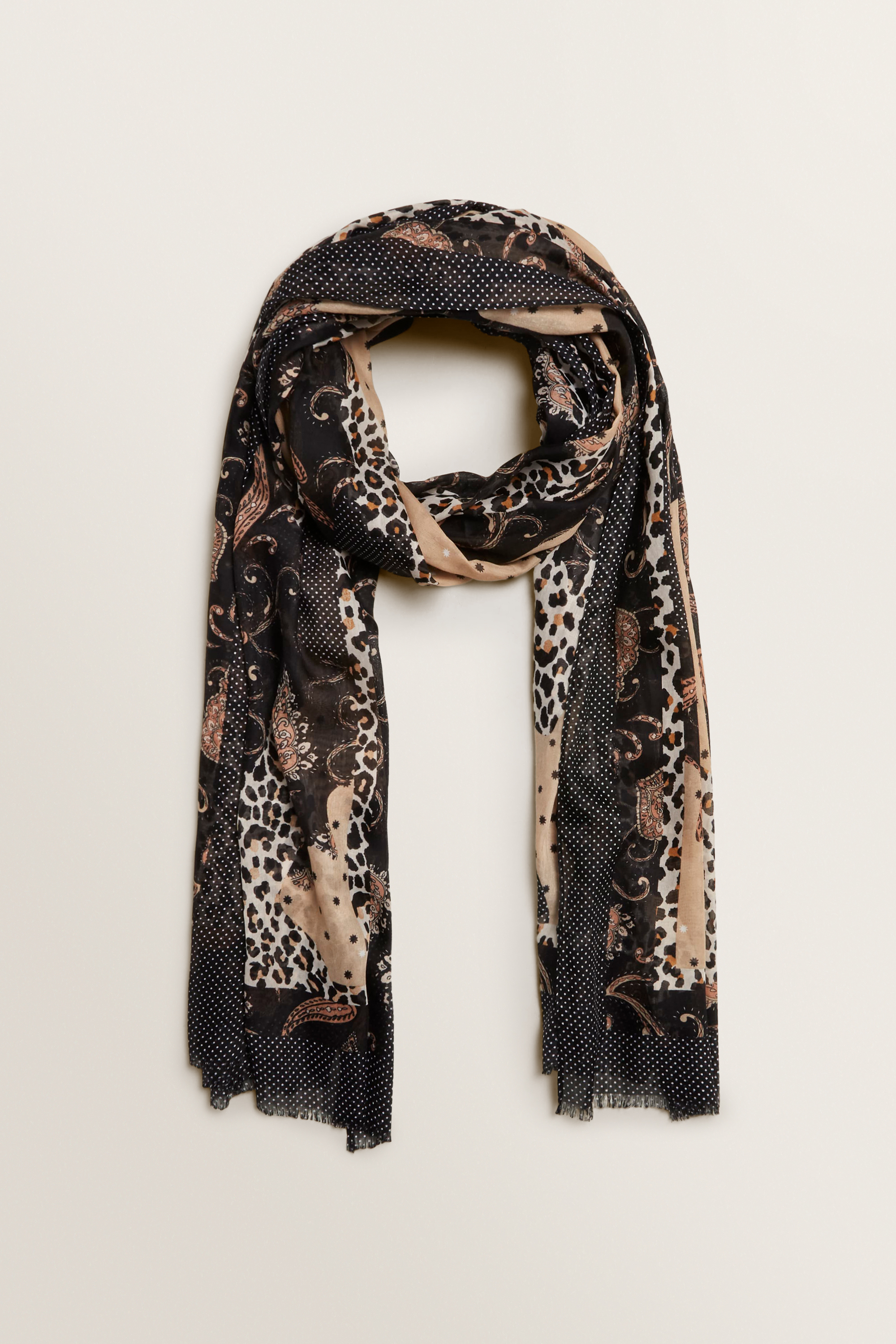 Personalise your look with this Mixed Paisley Ocelot Scarf. This versatile piece can be wrapped around a bag, hairstyle, wrist or worn as a traditional necktie, the choice is yours. Featuring a bold Black/Multi-Coloured print in a sheer fabrication, this Mixed Paisley Ocelot Scarf is made from a Viscose blend. For care instructions, please check the label inside of the garment.