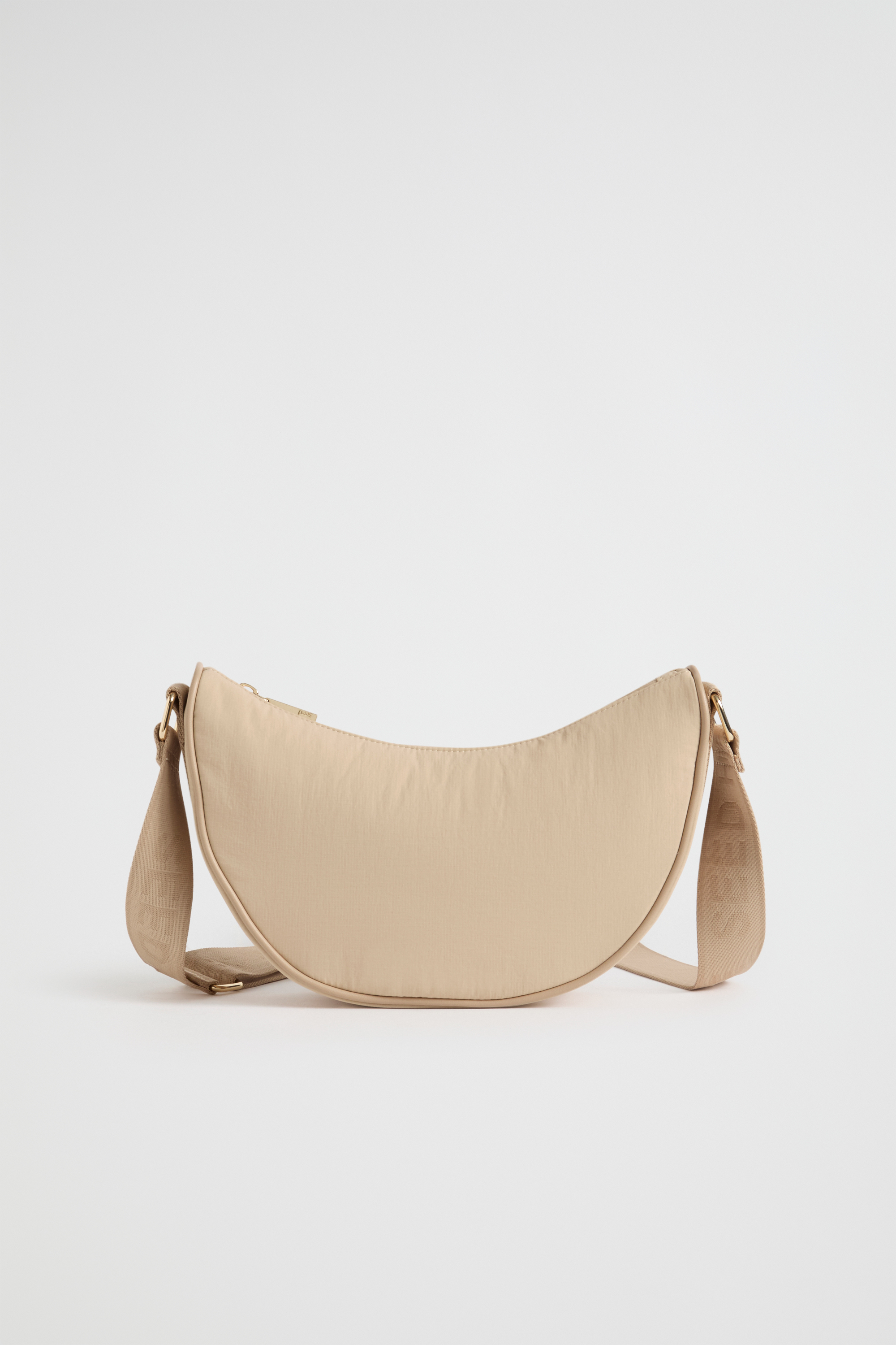 Easy to style and ideal for carrying the essentials, this saddle bag features an adjustable crossbody strap with logo details, and a statement crescent shape. It has a top zip closure and internal card pockets.