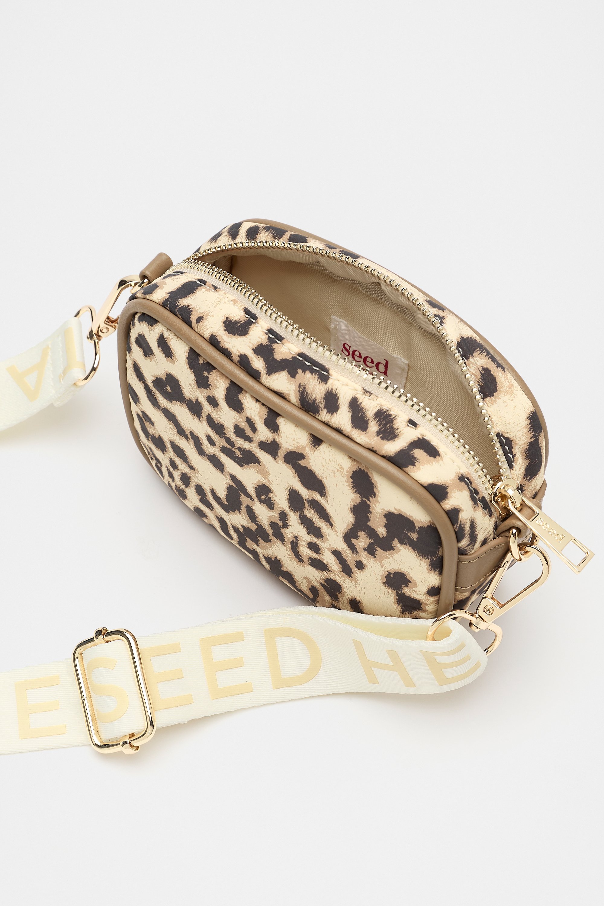 Finished in a playful animal print, this crossbody bag adds a fun and stylish touch. It features a top zip closure and a detachable logo strap with gold hardware. Pair with the matching apparel for a chic coordination or for the perfect gift.