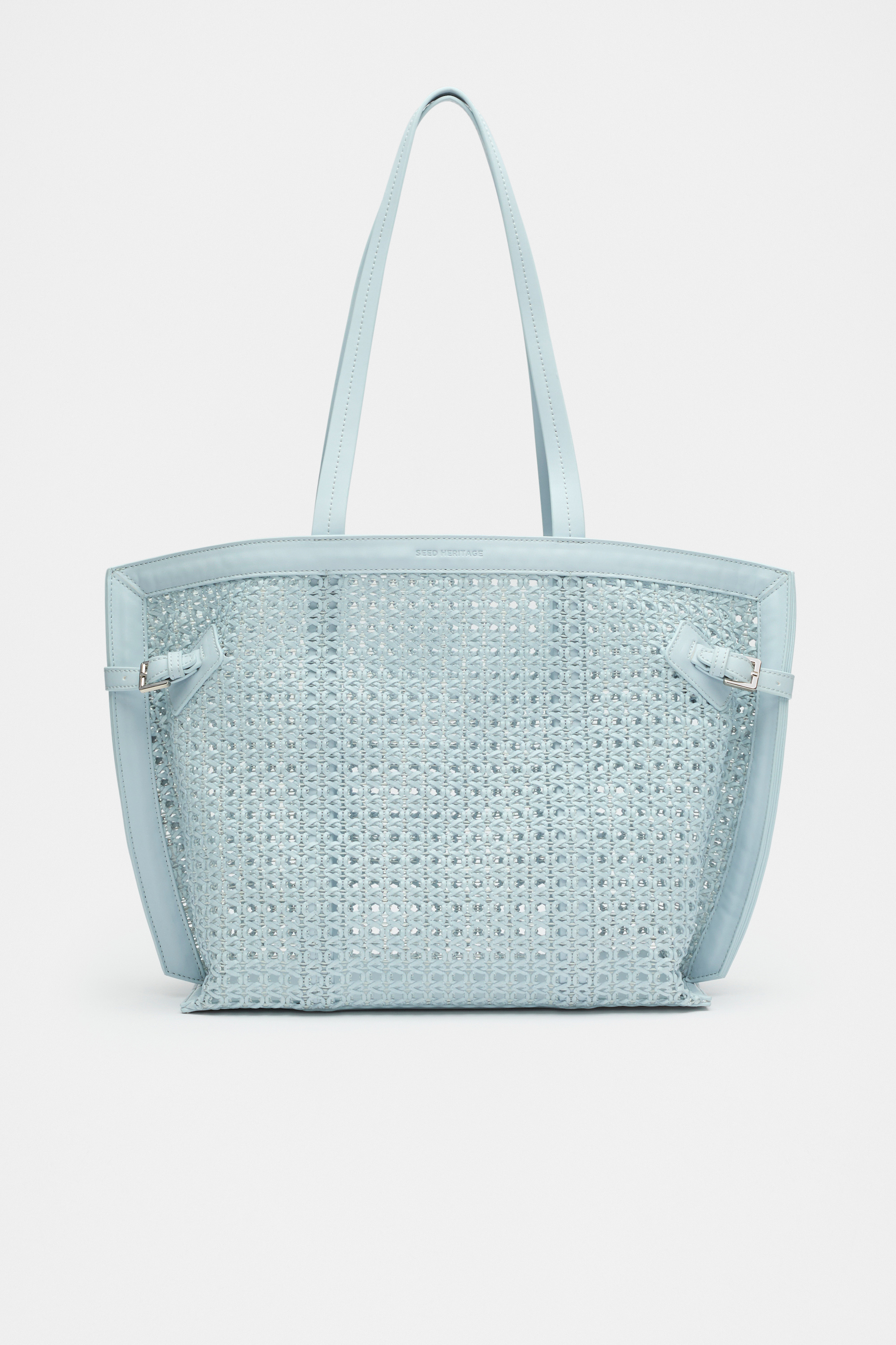 With a textured, woven finish, this bag is perfect for your warm-weather styling. It's an open tote design and features adjustable side buckles and a PU base.