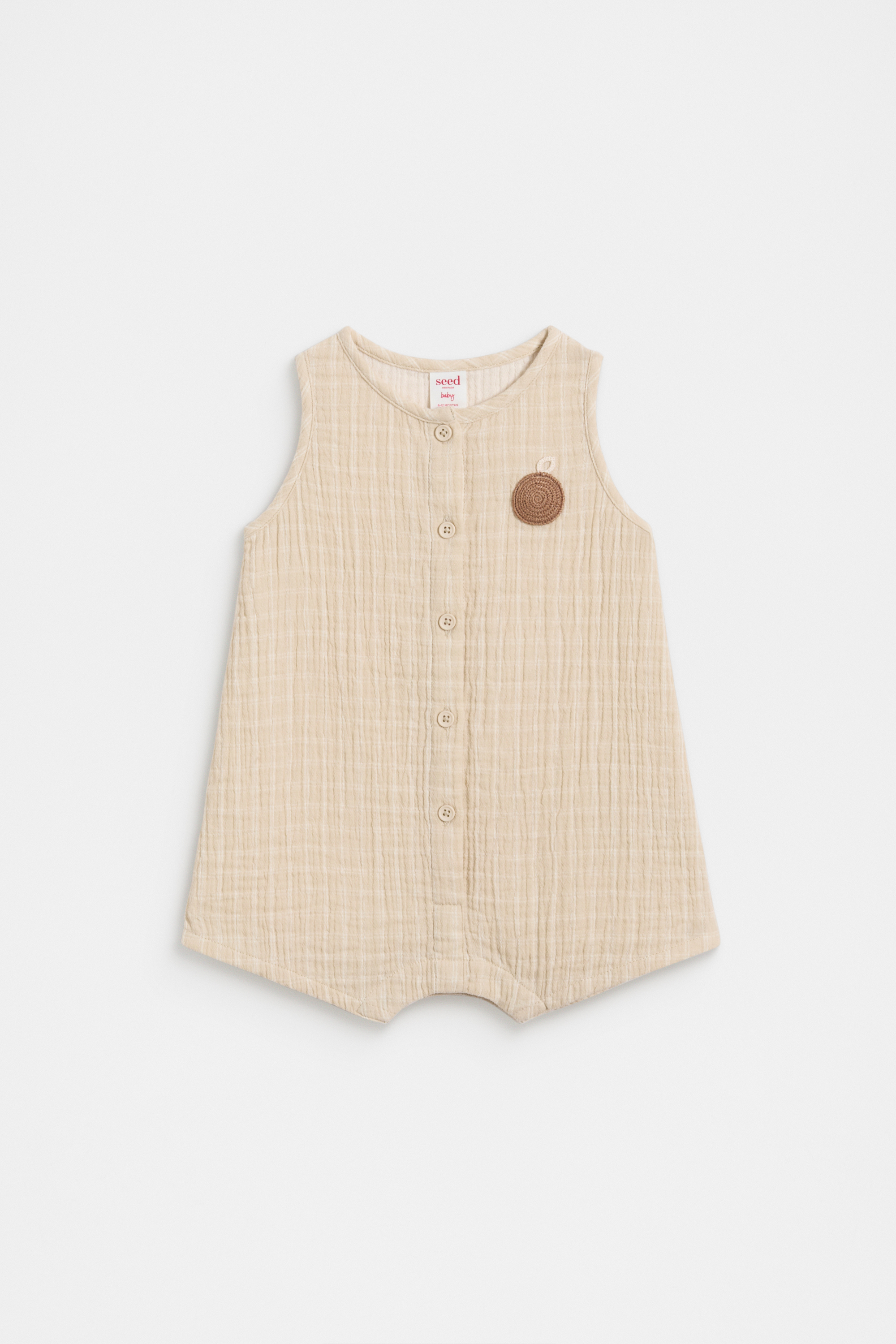 An adorable option for their little wardrobe, this romper has the sweetest details. Crafted in premium cotton, it's a sleeveless design with a button front, gusset snaps and an embroidered orange patch.