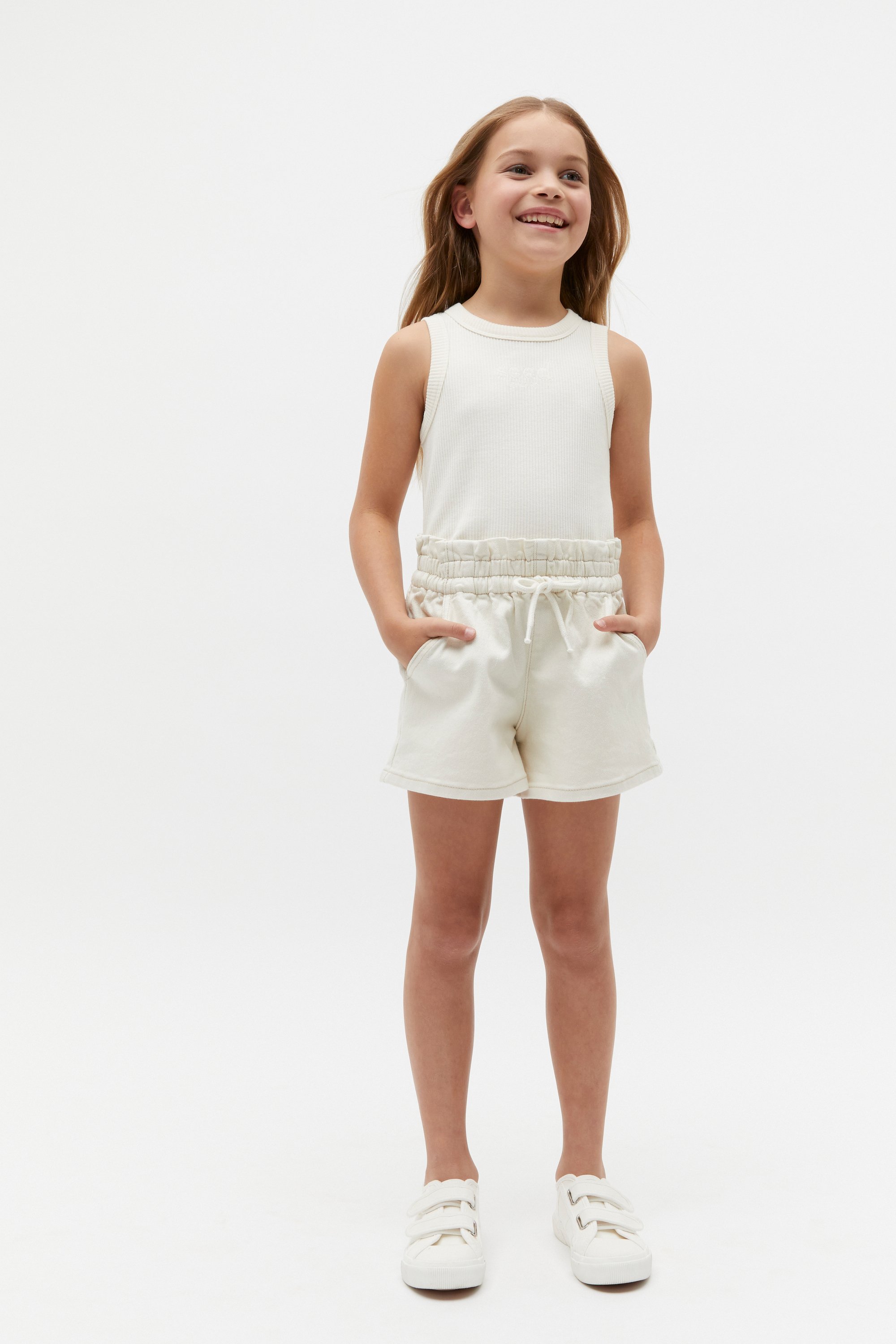 Crafted from classic non-stretch denim, these shorts are ready to be worn on repeat. They feature an elasticated paperbag waistband with a drawstring, and curved side pockets. They can be worn with the matching cami for a double-denim moment.