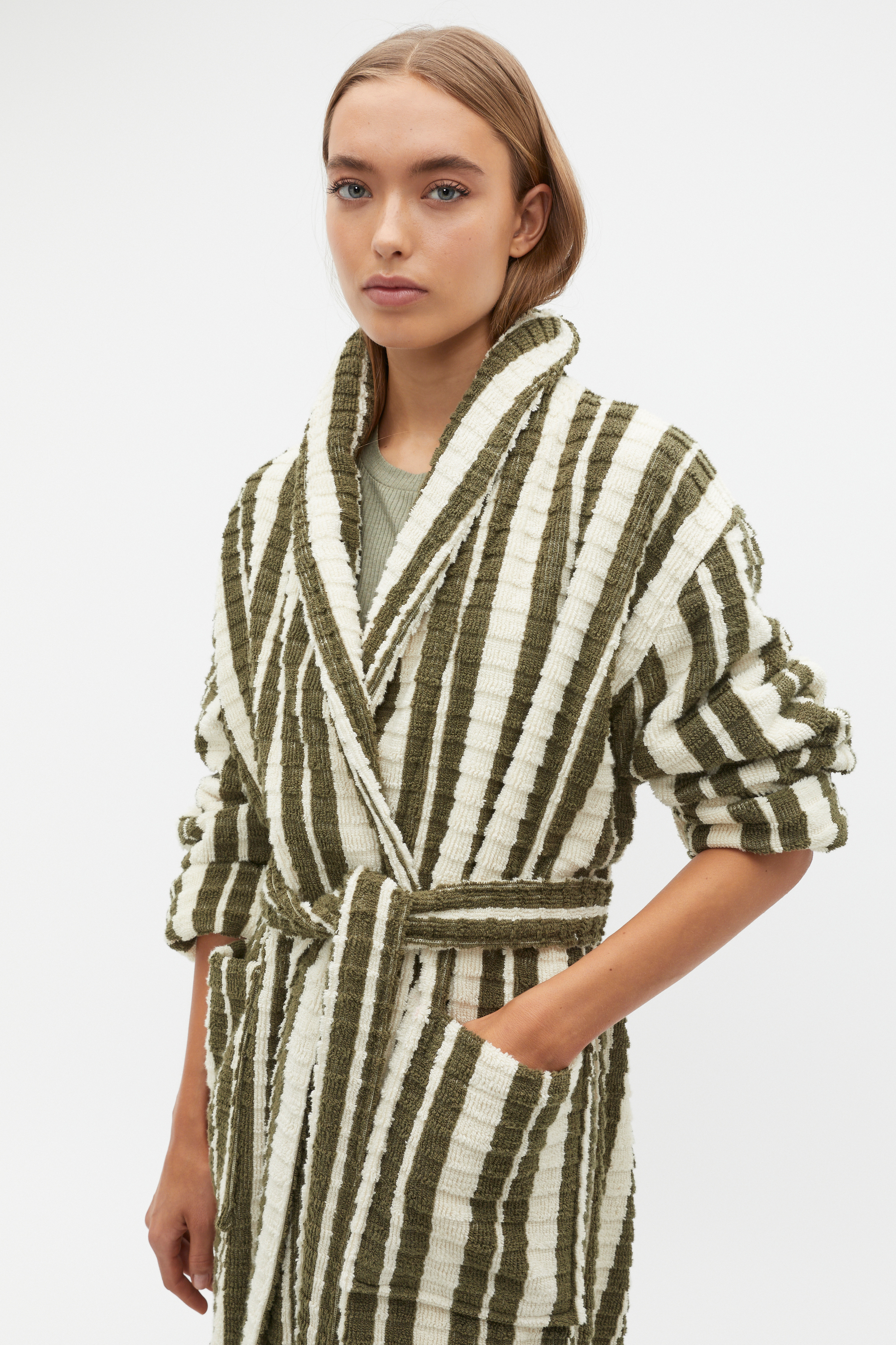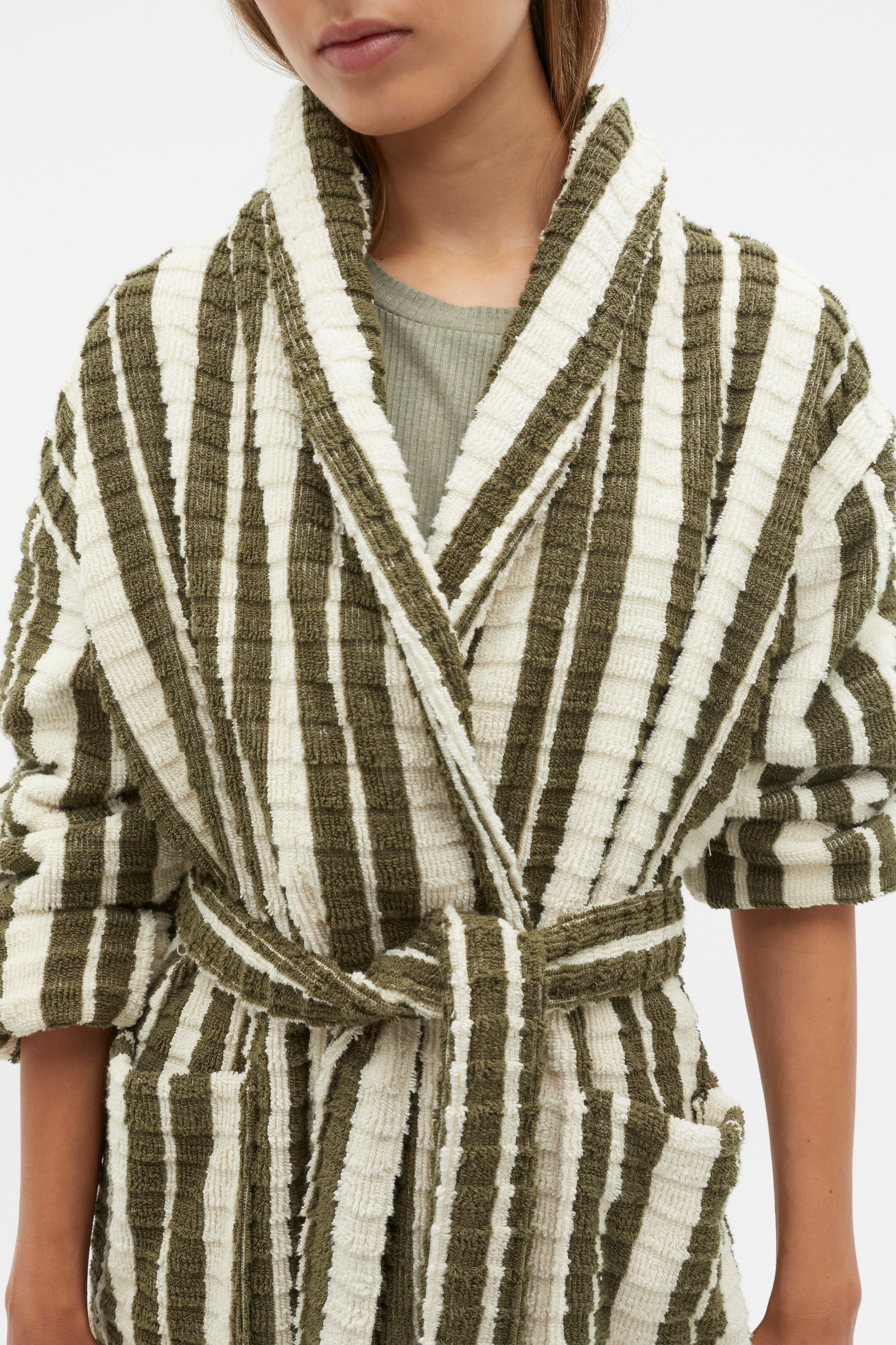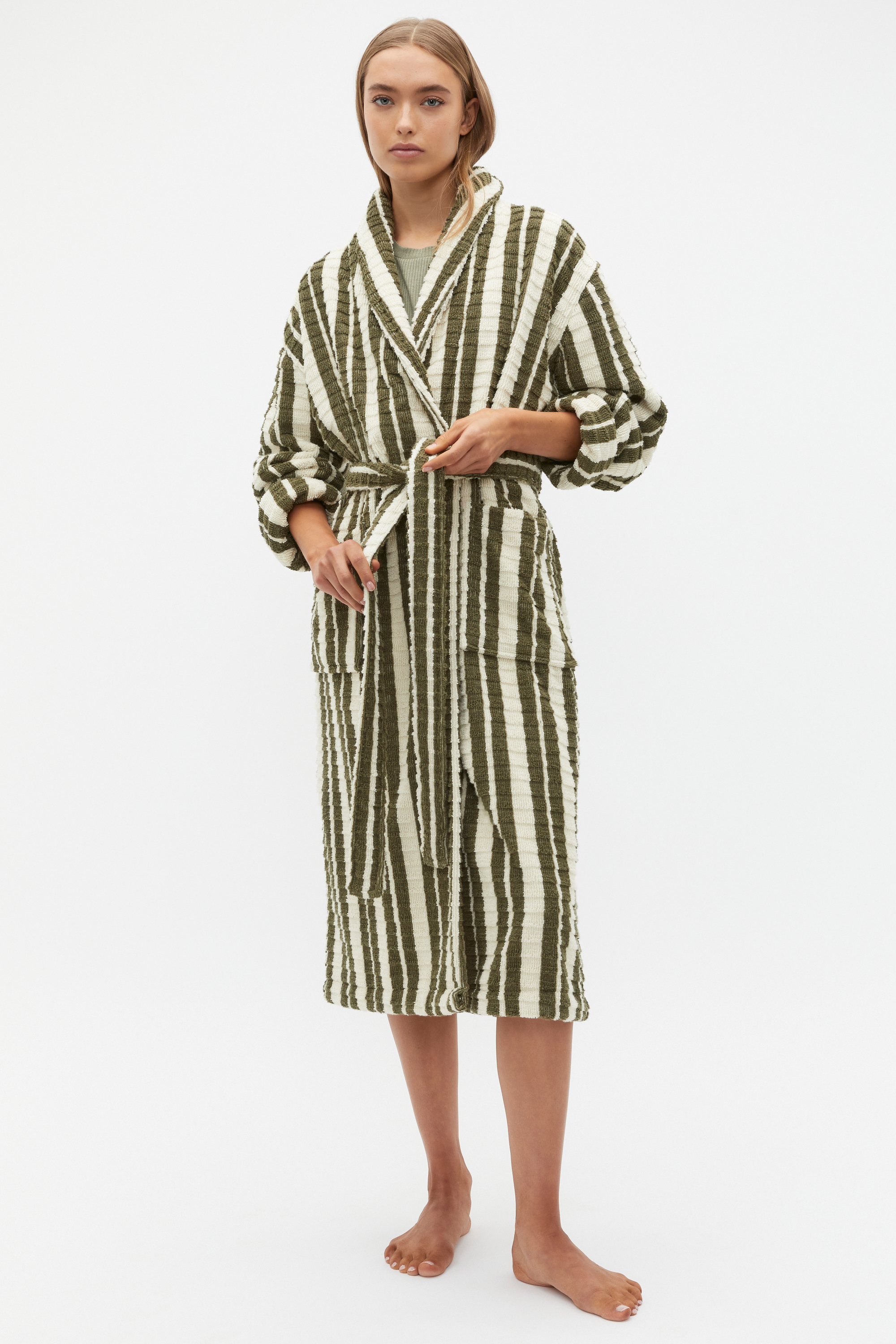 Wrap yourself in comfort with this luxurious robe, crafted in premium cotton. With a plush weighted feel, it's perfect for those cooler mornings. It features long sleeves, front pockets and a timeless stripe pattern. Available in two colours to suit any style.