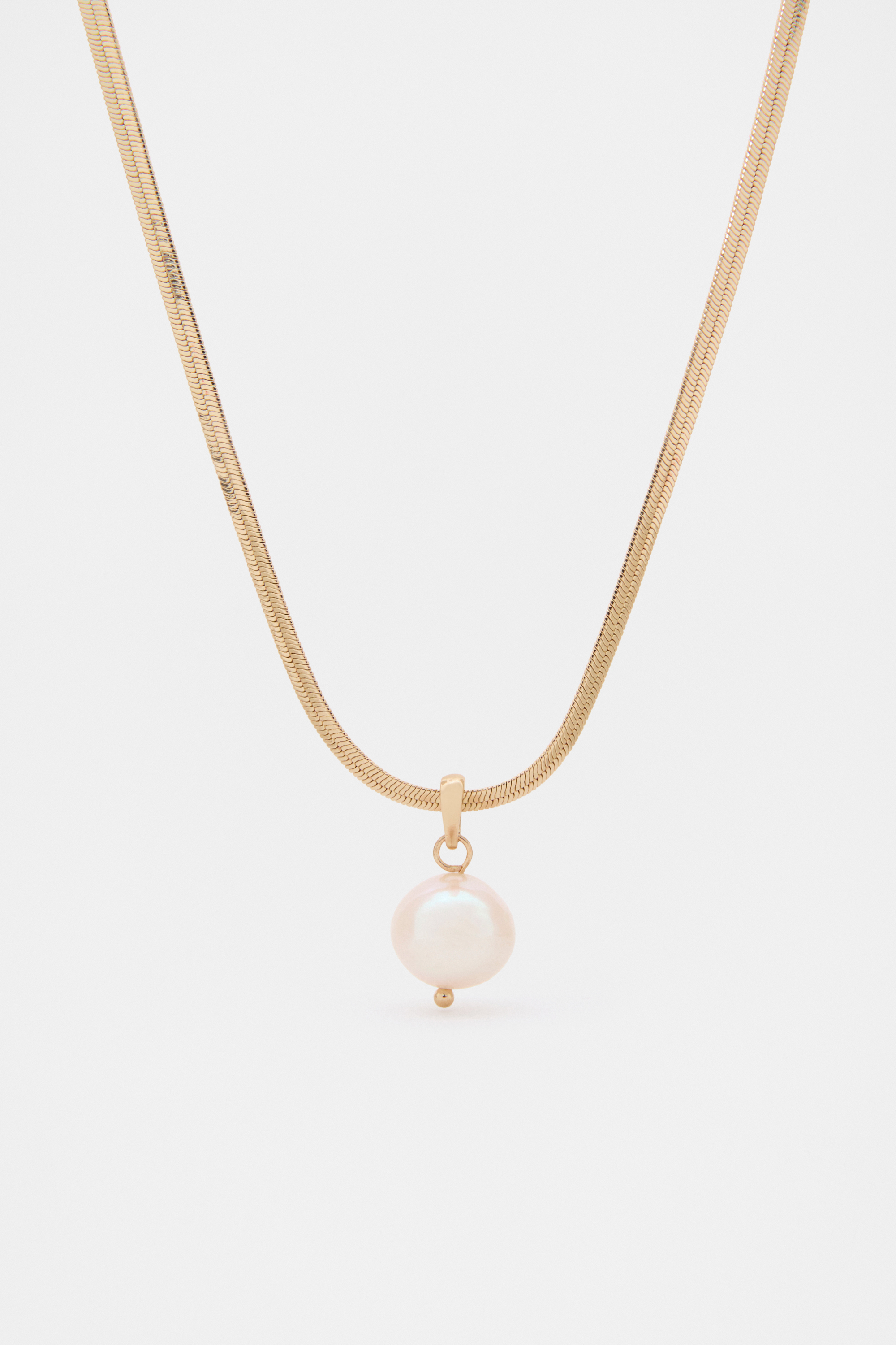 With a delicate chain and a featured pearl pendant, this necklace is sure to add a touch of elegance to your outfit. This design is perfect to either style alone or stack with additional pieces for a statement look.