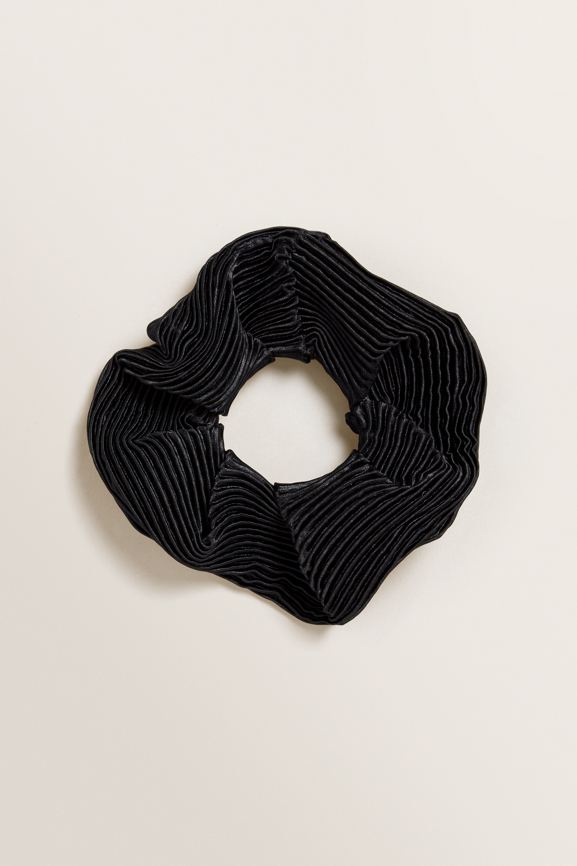This Pleated Scrunchie is a staple hair accessory for a nineties influenced up-do. Tie back curly tendrils or throw your hair up into a messy pony or bun without worry. With a pleated Black colourway, this scrunchie is made from a Polyester blend and is available in one size.