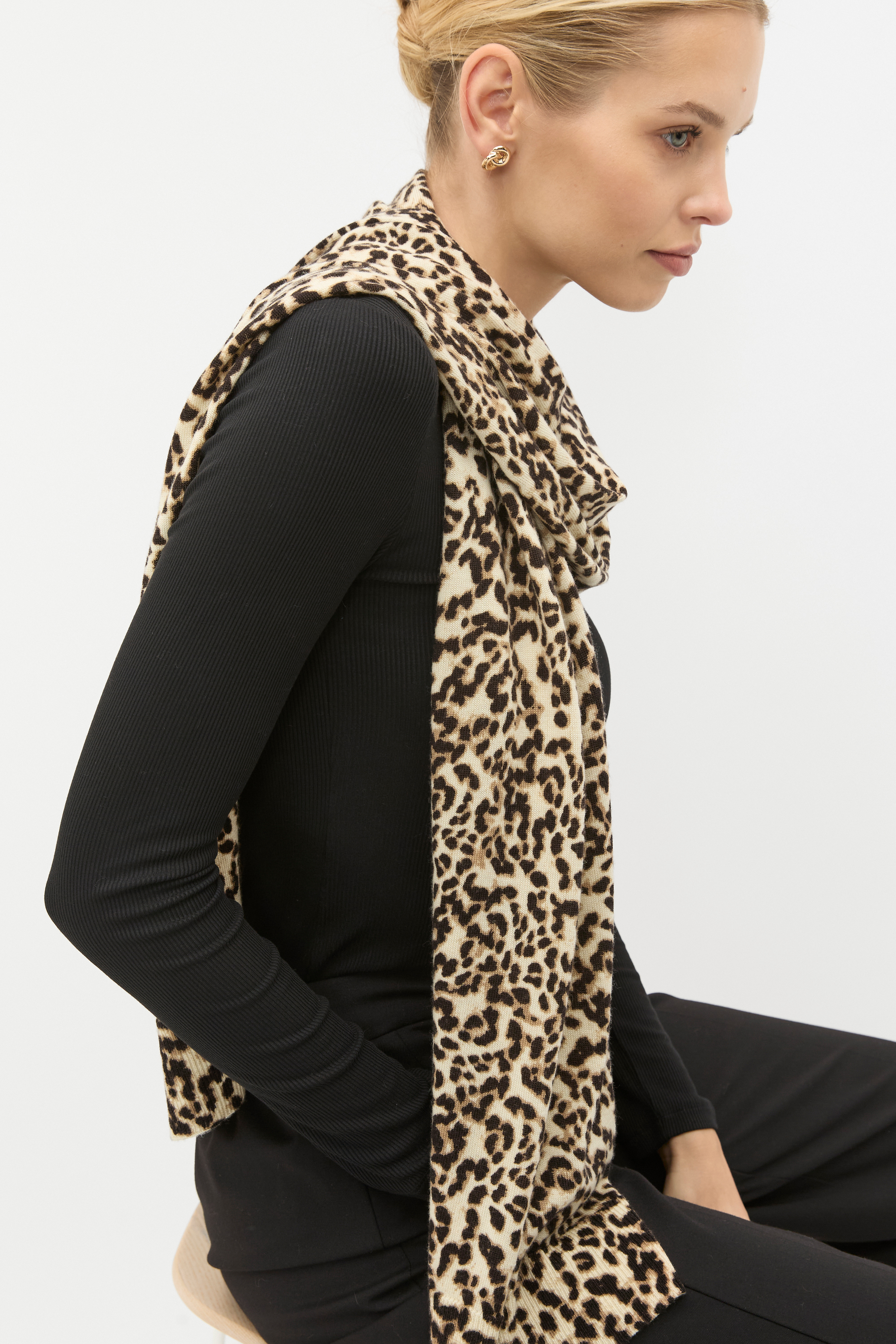 Add a statement animal print to your wardrobe this winter with this scarf, both cosy and elegant. Crafted in pure Australian Merino wool, it has a knit finish and features a one-sided animal print.
