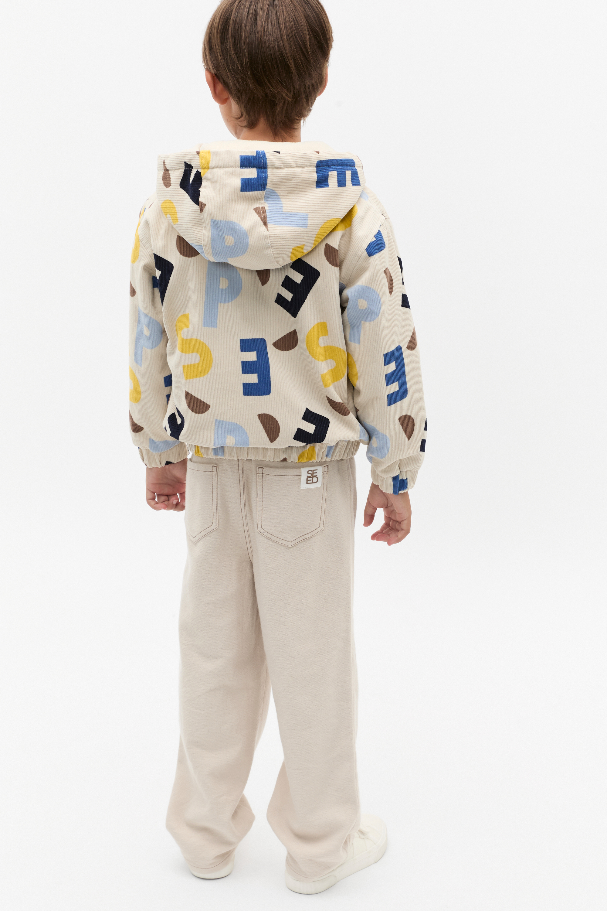 Cool and colourful, this cord jacket has a printed design and is crafted in premium cotton. It features a hood, a zip front, long sleeves and elasticated cuffs.