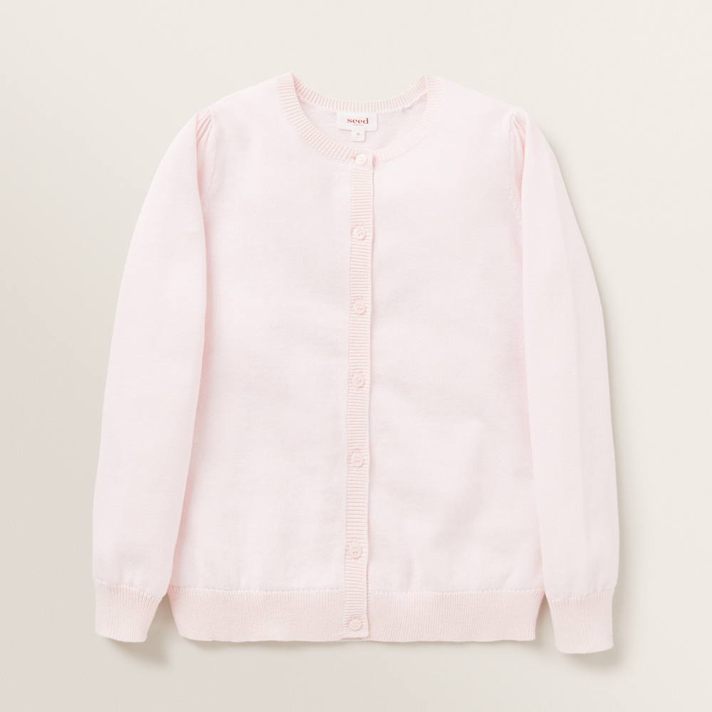 This Puff Sleeve Cardigan will keep her trendy and warm all season. It features a ribbed placket, neckline and hem to match. Made from a super soft 100% Cotton thread, this Puff Sleeve Cardigan is available in sizes 2 to 10. For care instructions, check the label inside the garment.