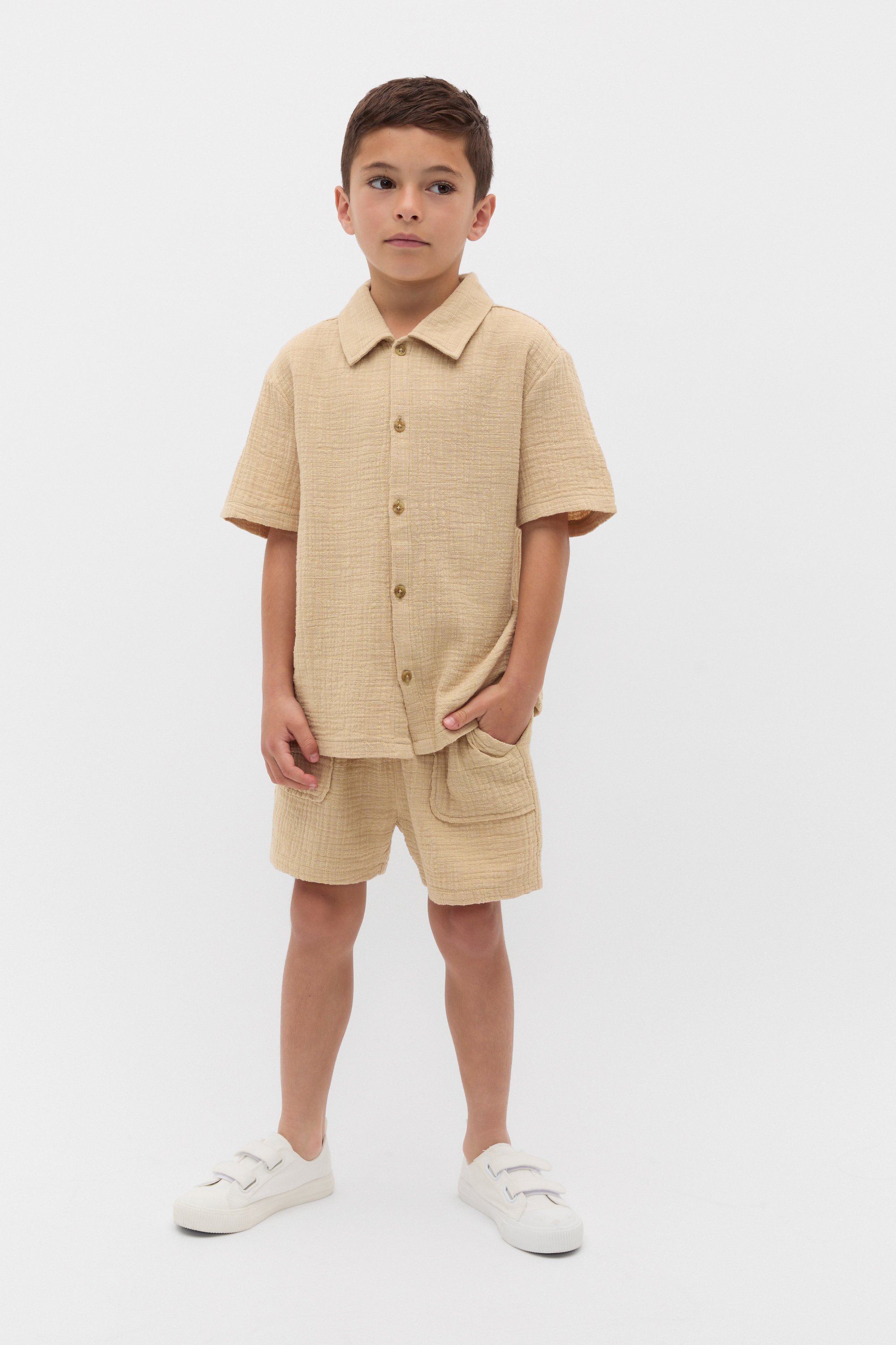 These classic shorts are a versatile pair for whatever he's up to. Crafted in premium cotton with a textured finish, they feature an elasticated waistband with a drawstring, pockets and a relaxed fit. Pair with coordinating textured shirt for a smart matching set.
