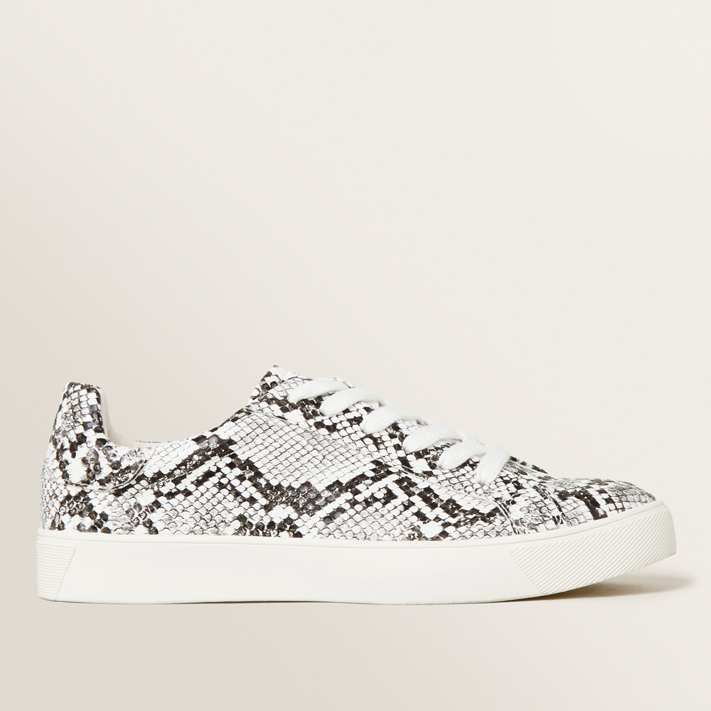 With an all-over snake print, these Python Print Sneakers feature a six-eyelet lace up design and are detailed with a rounded toe and fully lined rubber sole. Made from a PU upper and Rubber sole, these fashion-forward Python Print Sneakers are available in sizes 34 to 40.